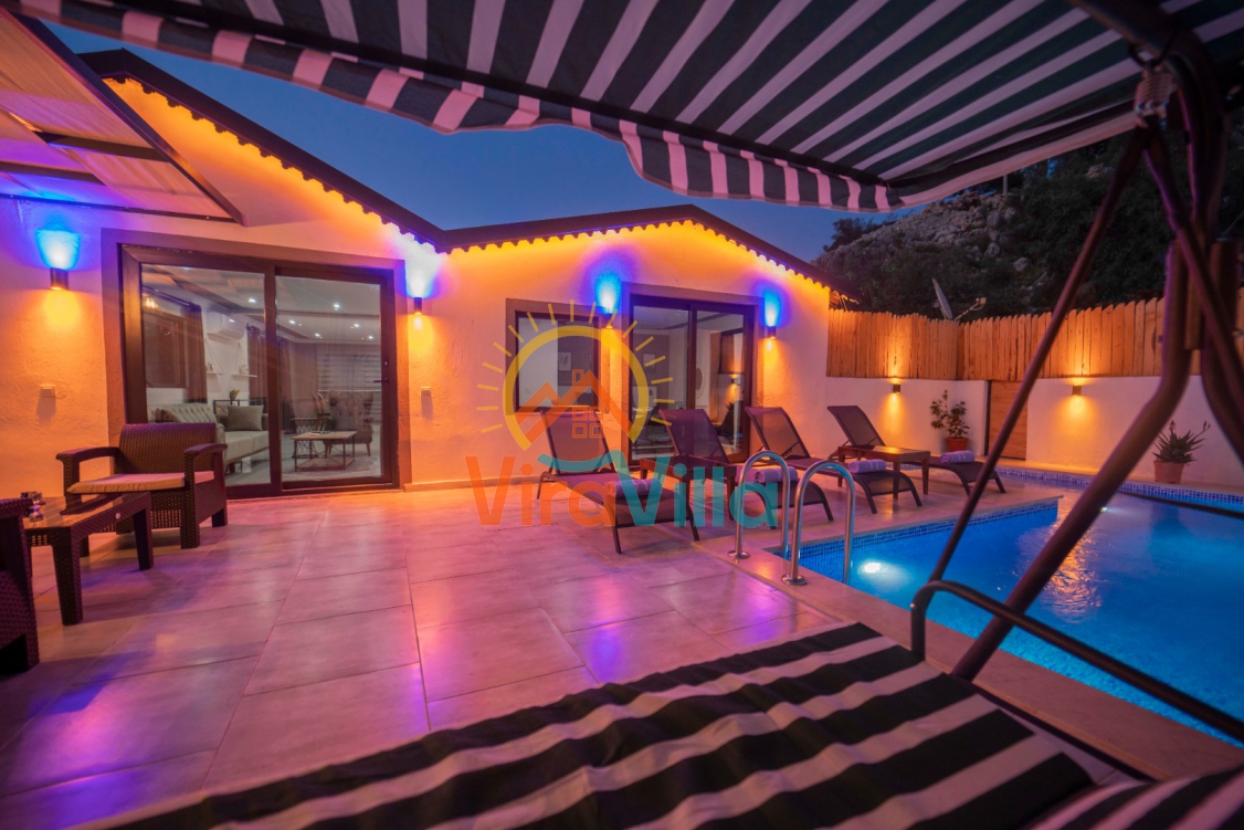 Kalkan Patara bölgesinde 4 kişilik konaklama kapasitesi ve 2 adet yatak özelliklerine sahip villalarımızdandır. Jakuzili olması nedeni ile balayı çiftlerimizin oldukça sık tercih ettiği suitimiz doğa içerisinde bir özelliğe sahiptir. Kısmen korunaklı bir havuz alanına sahip olan villamızın bahçe alanının özel havuzuyla tatilin keyfini çıkarabileceksiniz.