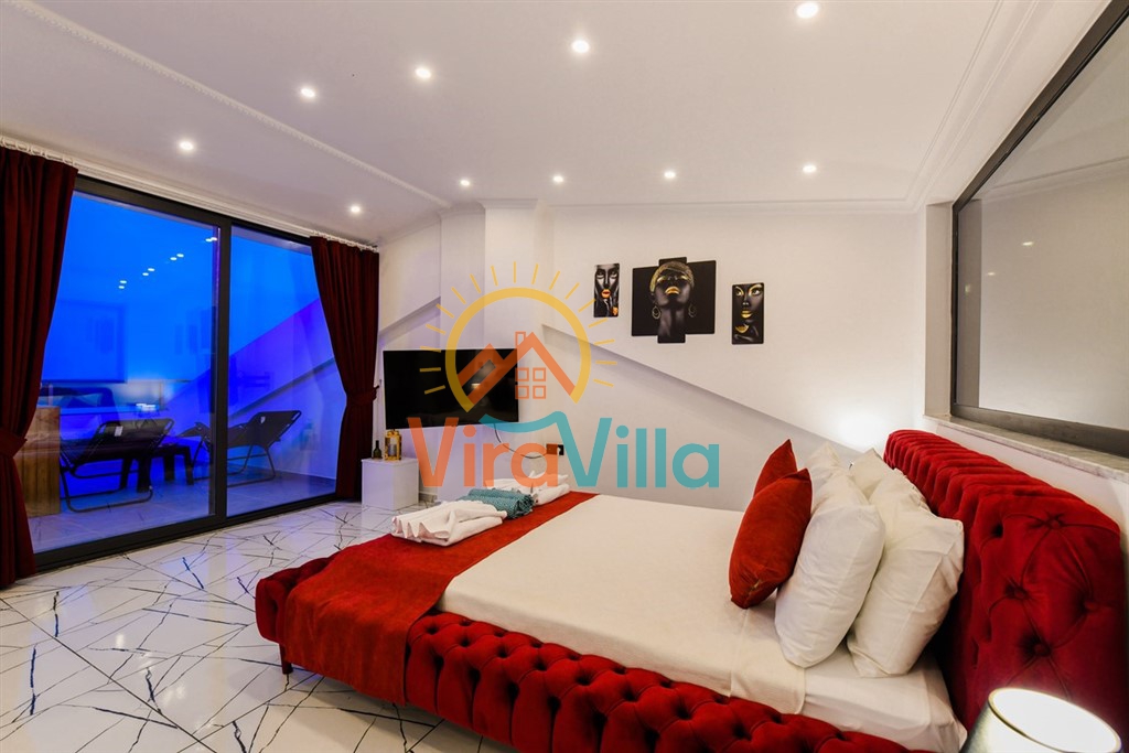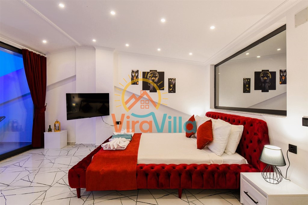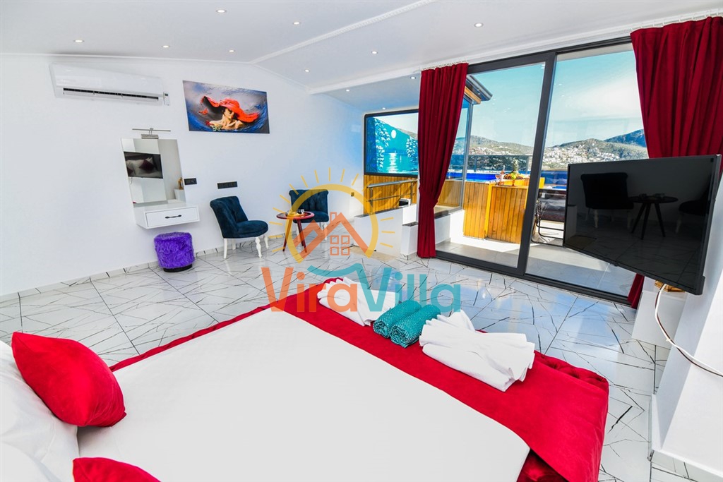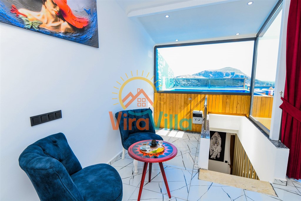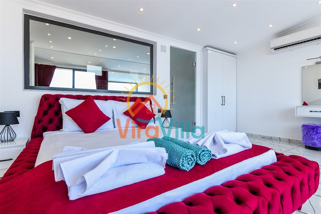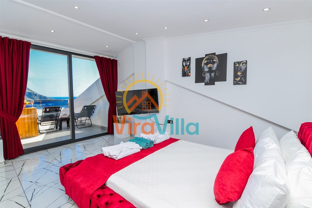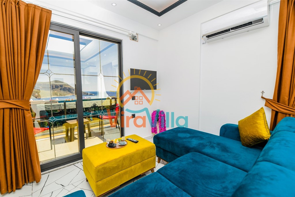 Kalkan merkez bölgesinde 4 kişilik konaklama kapasitesi ve 2 adet yatak odasına sahip villalarımızdandır. Deniz manzaralı ve jakuzili olamsı nedeni ile siz değerli misafirlerimizin oldukça sık tercih ettiği tatil evlerimizdendir.