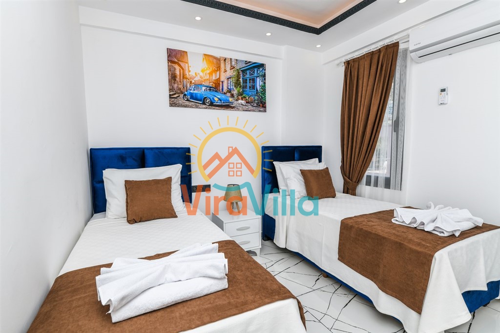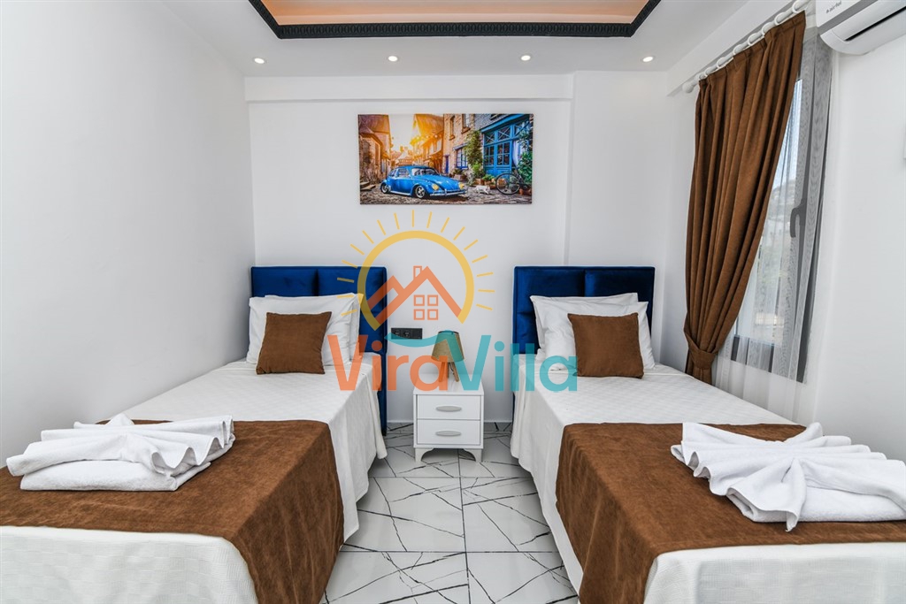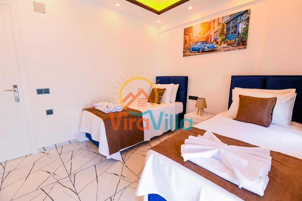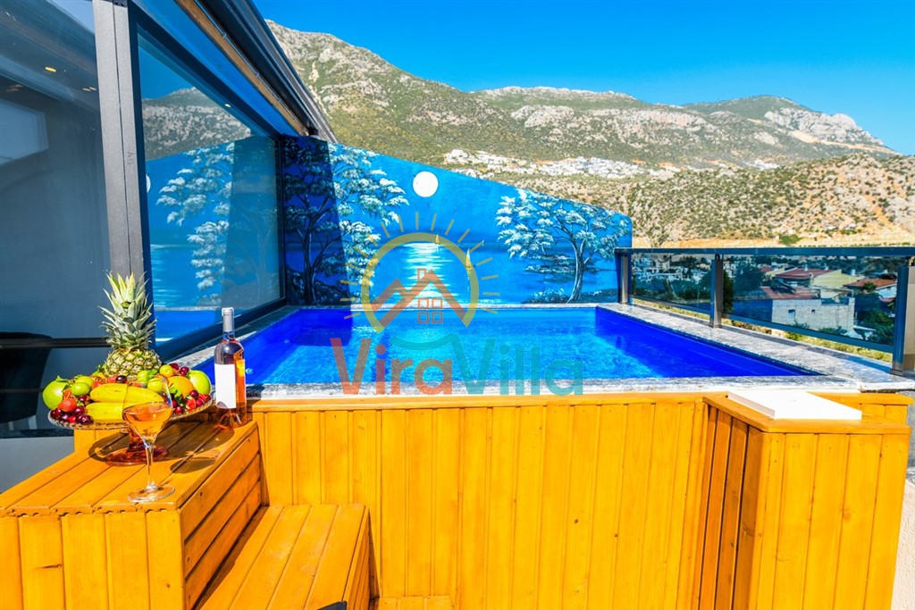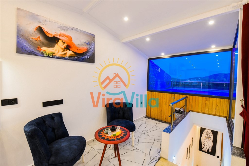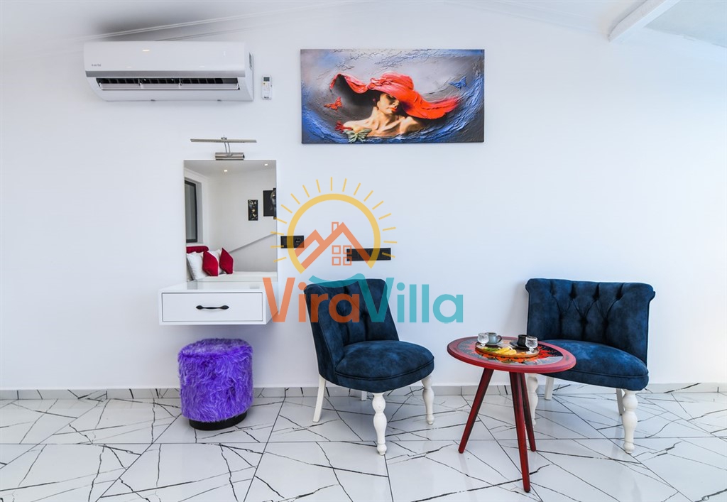 Kalkan merkez bölgesinde 4 kişilik konaklama kapasitesi ve 2 adet yatak odasına sahip villalarımızdandır. Deniz manzaralı ve jakuzili olamsı nedeni ile siz değerli misafirlerimizin oldukça sık tercih ettiği tatil evlerimizdendir.