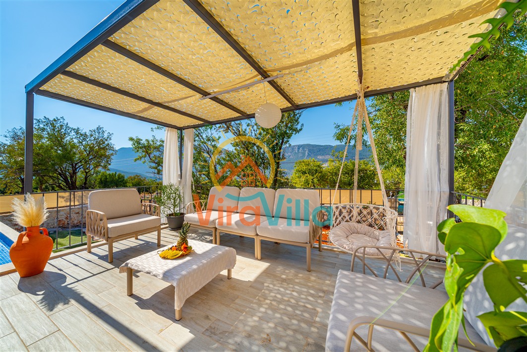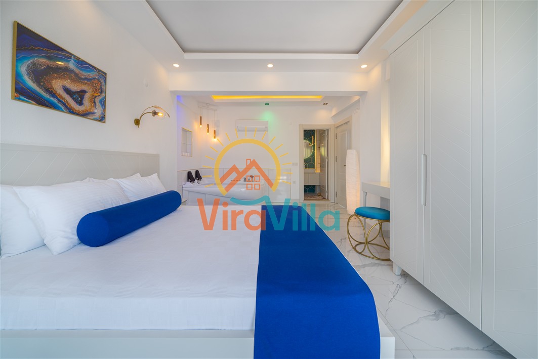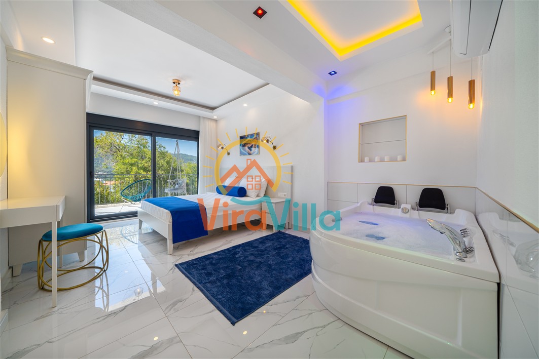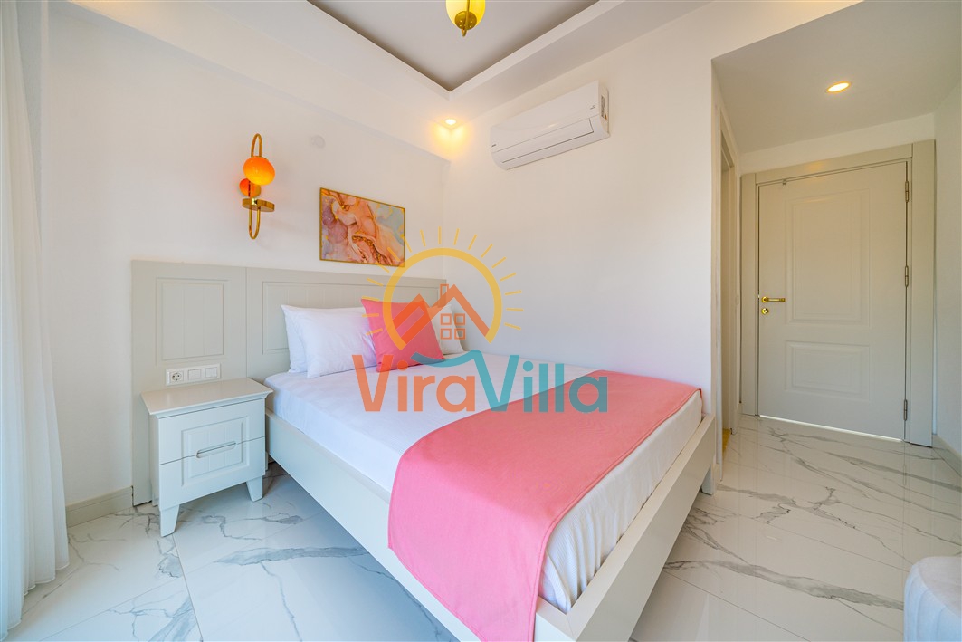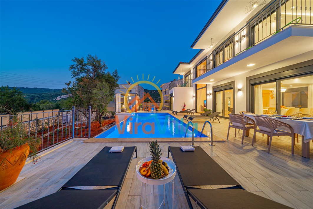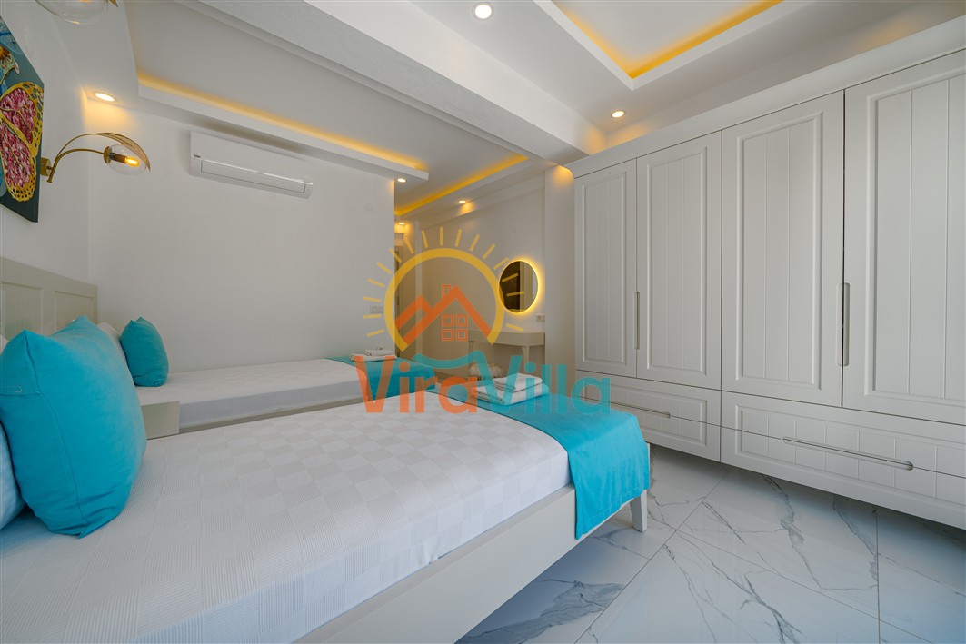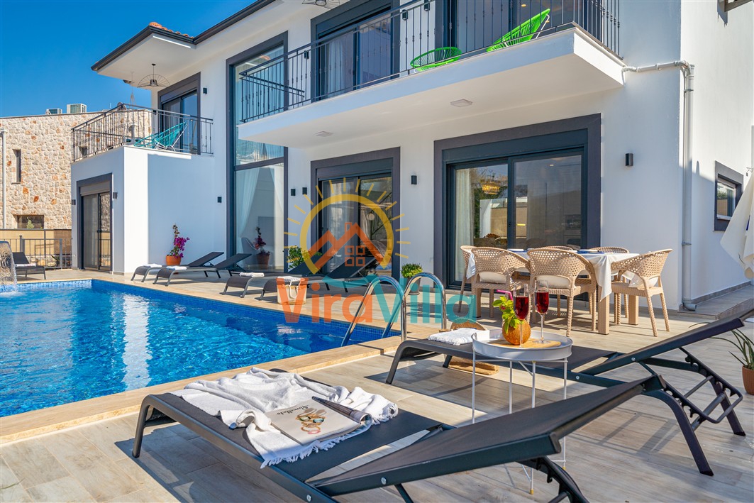 Akdeniz’in en büyüleyici noktalarından biri olan Kaş Andifli’de, doğa manzarasıyla ruhunuzu dinlendirecek özel bir villa sizleri bekliyor. 4 yatak odalı ve 8 kişilik konaklama kapasitesine sahip bu şık villa; hem aileler hem de arkadaş grupları için konforlu ve keyifli bir tatil imkânı sunuyor. Geniş ve ferah yaşam alanları, modern mimarisi ve doğayla bütünleşen konumuyla misafirlerine huzurlu bir atmosfer sunan villamızda tatilin her anı ayrı bir keyif. Günün yorgunluğunu jakuzide atabilir, sevdiklerinizle birlikte unutulmaz anlar yaşayabilirsiniz.
