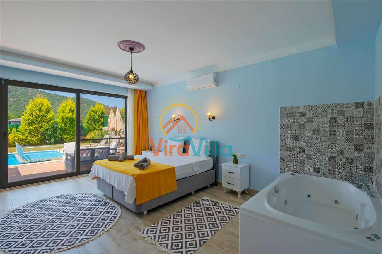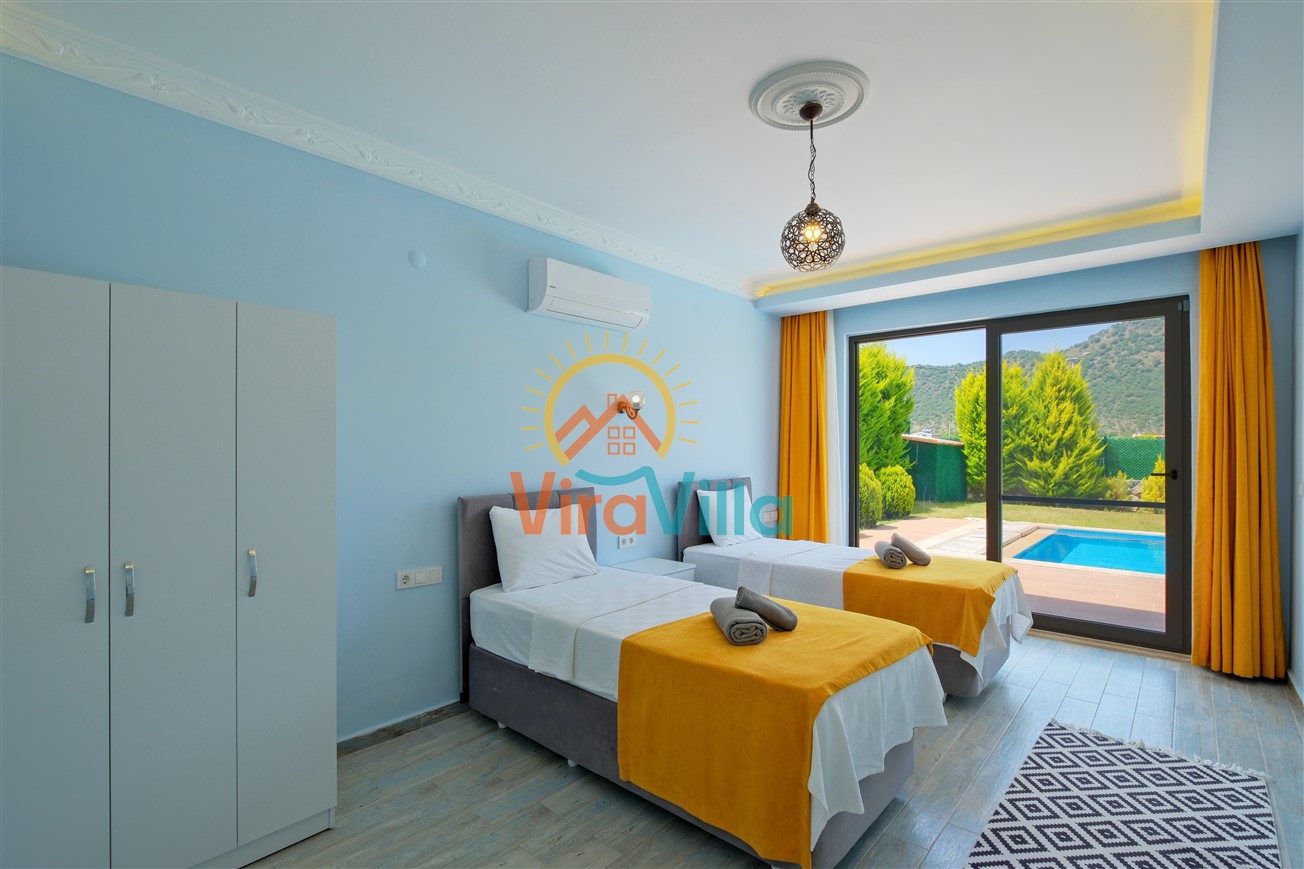 Fethiye Kayaköy bölgesinde 4 kişilik konaklama kapasitesi ve 2 adet yatak özelliklerine sahip villalarımızdandır. Korunaklı havuz alanı ve çocuk havuzlu olması nedeni ile siz değerli öğrencilerin oldukça sık etrcih unutmuş olduğu tatil evlerimizdendir.