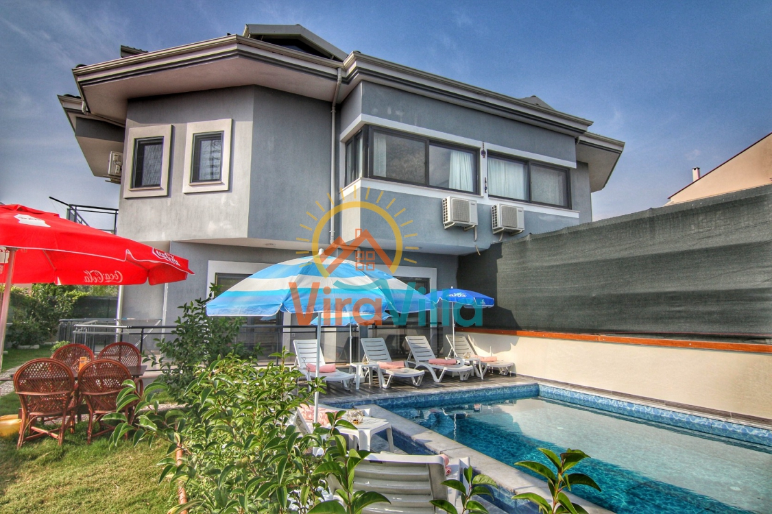 Fethiye Çiftlik beldesinde bulunan Villa Aras 1 , 3 yatak odalı ve 7 kişi konaklama kapasitelidir. Oldukça şık iç ve dış dizayna sahiptir. Size özel havuz ve bahçe alanı, barbeküsü ve tatil boyunca ihtiyacınız olabilecek tüm ayrıntıların düşünüldüğü Villa Aras 1 ' de keyifli bir tatil sizleri bekliyor. Villa Aras 2 ile yan yana bulunan Villa Aras 1 tarih uygunluğu olması durumunda birlikte de kiralanabilmektedir.