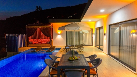 Kalkan İslamlar' da bulunan Villa Ardıç , 2+1, 4 kişilik konaklama kapasitesine sahiptir. Oldukça şık iç ve dış dizayna sahip villamızda yılın tüm yorgunluğunu atabileceğiniz bir adet jakuzi bulunmaktadır. Havuz alanı korunaklı olan villamızda , sevdiklerinizle güzel bir tatil geçirebilmeniz için tüm ayrıntılar düşünülmüştür.