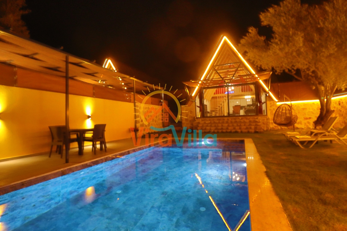 Villa Aşkhane Kalkan Üzümlü'de bulunan korunaklı havuz alanına sahip balayı villası olup, korunaklı alan havuzu ile muhafızkar çiftlerimizin de tercih ettiği villalarımızdandır. Market, restoran gibi tatiliniz boyunca ihtiyacınız olabilecek mekanlara yürüme mesafesinde olan villamız, Kalkan merkeze 7 km mesafede bulunmaktadır. Balayı konseptinde dizayn edilen villamızın yatak odasının kullanabileceği asma koridor jakuzisi de bulunmaktadır.