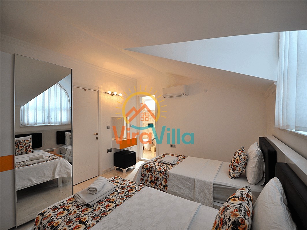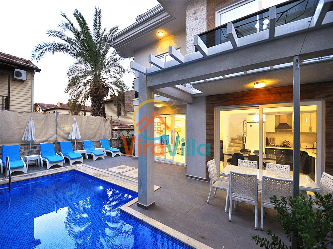 Fethiye’nin merkezinde yer alan ve deniz ile şehir hayatını uyum içinde buluşturan Villa Aydın, tatilde konforu ve ulaşım kolaylığını bir arada isteyen misafirler için ideal bir seçenektir. Sahile yakın mesafesinde bulunan konumu, çevresindeki sosyal alanlar ve ev rahatlığını sunan yapısıyla şehir içi villa tatiline farklı bir bakış kazandırır. Dört yatak odası ve sekiz kişilik konaklama kapasitesiyle tasarlanan iç alanlar, geniş aileler ve arkadaş grupları için ferah ve kullanışlı bir ortam sağlamaktadır. Fethiye sahil yoluna yakın konumda bulunan Villa Aydın; restoranlara, kafelere, marketlere ve çeşitli sosyal noktalara kolay erişim imkânı sunmaktadır.