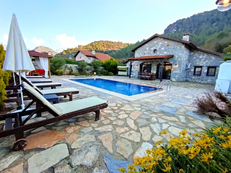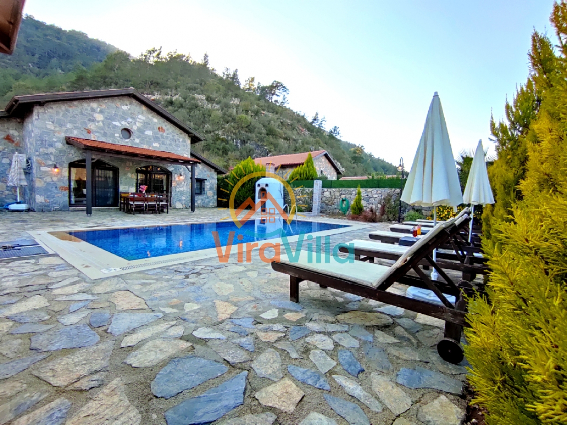 Villa Aysim 3, Fethiye'nin tarihi Rum evleri ile Dünyaca ünlü Antik Kayaköy bölgesinde bulunmaktadır. Kayaköy Müstakil havuz ve bahçeye sahip olan villamız taş mimarisiyle de harika bir görünüme sahiptir. Villamız kaydedilebilir en sakin konumlu villalarındandır. Villamızın sakin ve korunaklı havuzu ile muhafazakar bir yapıya sahiptir. Misafirlerimize özel hazırlanmış olan köşkümüzde havuz başında doldurma ve sevdiklerinizle harika zamanlar geçirebilirsiniz. Havuzun başında ayrıca yapısallarımız da bulunmaktadır. Villamızın içerisinde anlarınızı ölümsüzleştirebilen, konforlu zamanlar önünde geçirebileceğiniz kış aylarının da olmazsa olmazı şöminemiz de bulunmaktadır. Doğa ile içiçe olan Villa Aysim 3 çevresini sağlayan bu muhteşem doğa ile huzurlu ve keyifli bir tatil için misafirlere en güzel şekilde ev sahipliği yapabilir. Villa Aysim 3 Tarihi Antik Kente 2 km,Gemiler Plajına 5 km mesafede yer almaktadır.