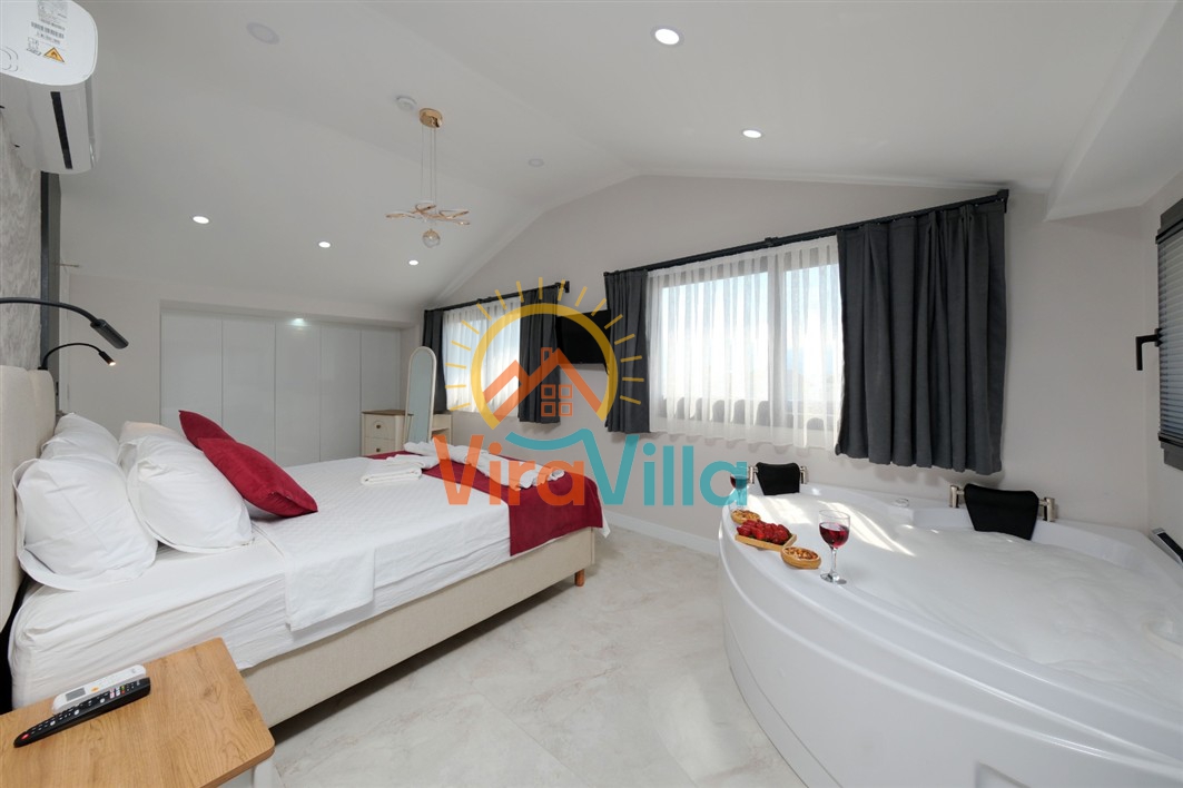 Fethiye’nin gözde bölgelerinden Karaçulha’da konumlanan bu özel villamız, modern mimarisi ve konfor odaklı tasarımıyla misafirlerine unutulmaz bir tatil deneyimi sunuyor. Doğayla iç içe, sakin ve huzurlu bir atmosferde yer alan villamız, hem aileler hem de arkadaş grupları için ideal bir seçenektir. Toplamda 3 yatak odası ve 6 kişi konaklama kapasitesine sahip olan villamız, ferah yaşam alanları ve şık dekorasyonuyla dikkat çekmektedir. Ebeveyn odasında bulunan jakuzi sayesinde tatilinize ekstra konfor ve keyif katabilirsiniz.
