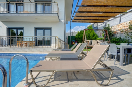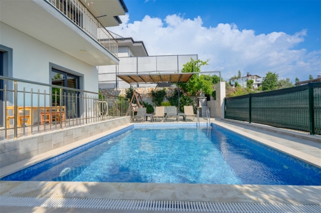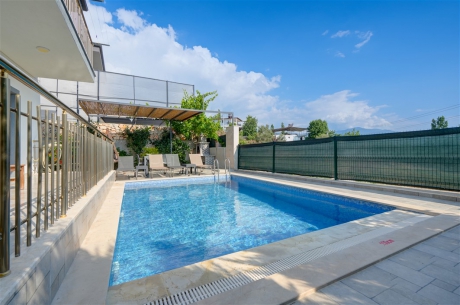 Yemyeşil bahçesi, özel yüzme havuzu ve barbekü alanıyla dış mekânda keyifli vakit geçirebilir; akşamları doğanın eşsiz manzarasında dinlenmenin tadını çıkarabilirsiniz.