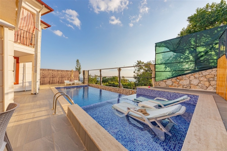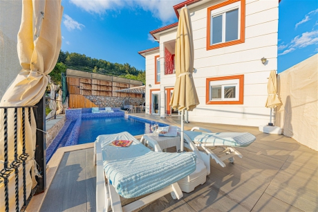 Kalkan'ın İslamlar Köyü'nde konumlanan Villa Beyaz, romantik bir balayı veya gözlerden uzak bir aile tatili geçirmek isteyenler için ideal bir seçenektir. Villa Beyaz, 2 yatak odası ile 4 kişilik kapasiteye sahiptir. Villamızın en dikkat çekici özelliklerinden biri doğa manzarasının keyfini doyasıya çıkarabileceğiniz geniş bir terasa sahip olmasıdır. Ayrıca, havuz alanının korunaklı yapısı sayesinde, dış gözlerden uzak bir tatil deneyimi yaşayabilirsiniz. Villa Beyaz muhafazakar ailelerimiz ve balayı çiftlerimiz için ideal tatil villalarımız arasında yer almaktadır.