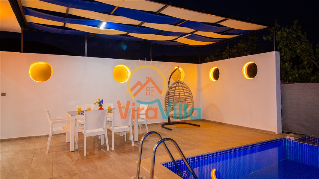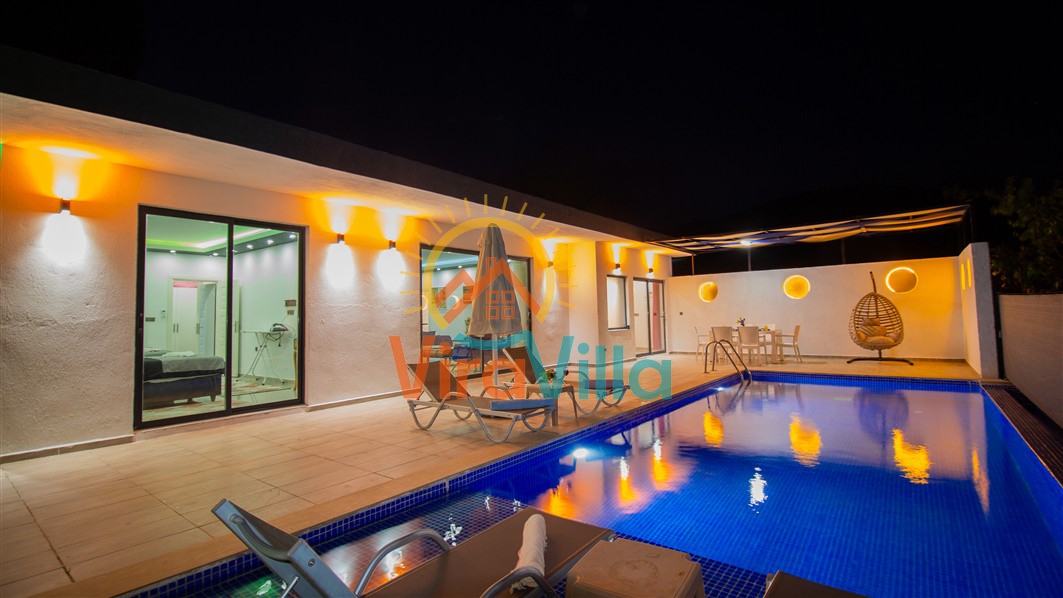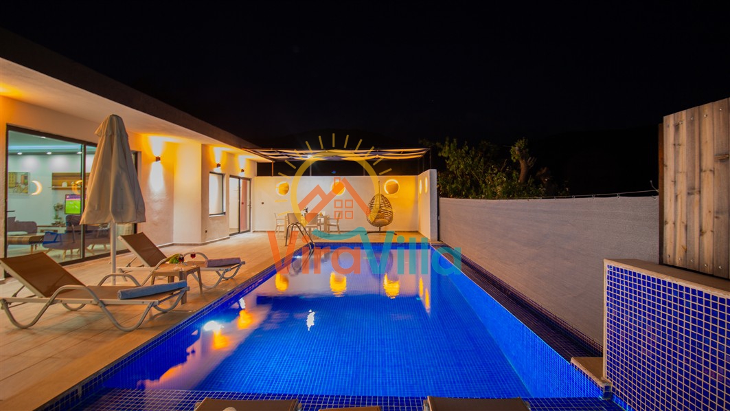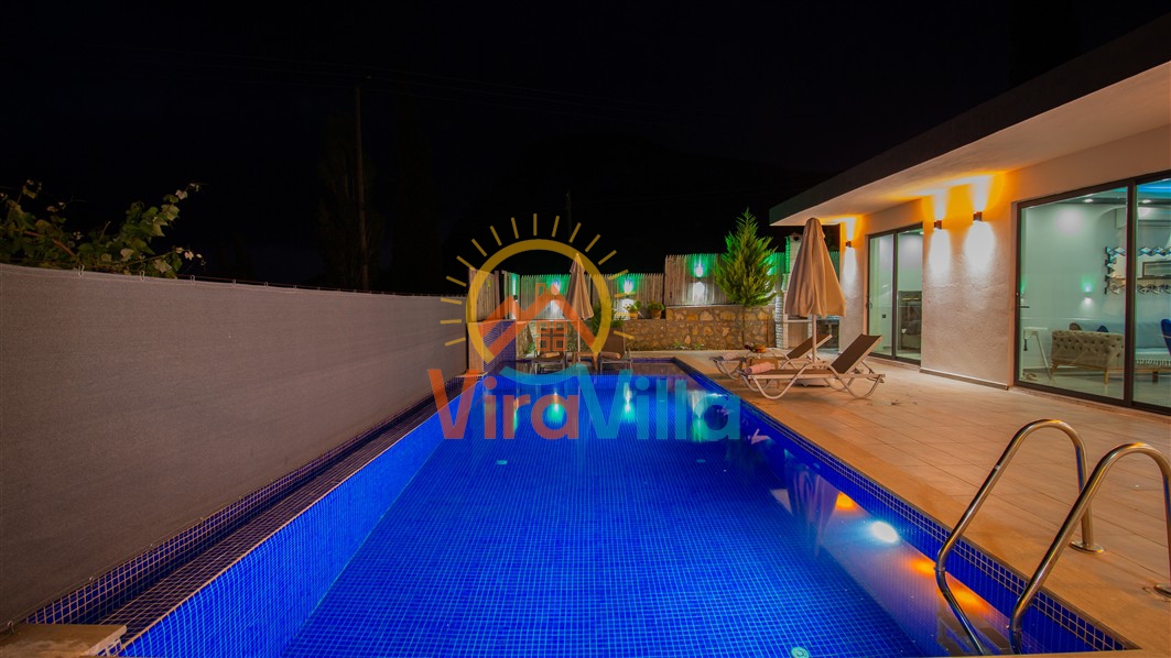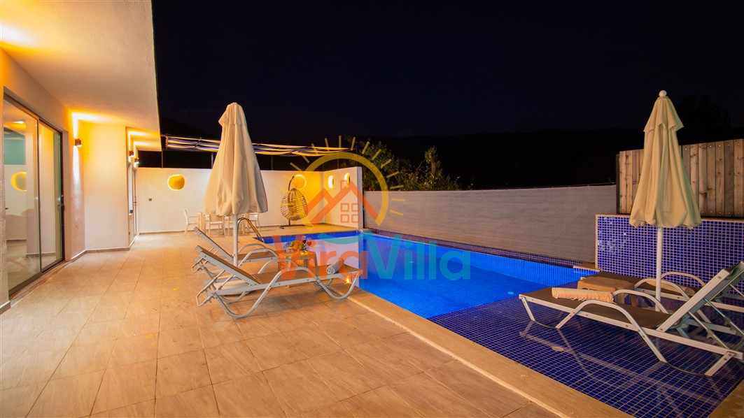 Villa Birnur, Kalkan' ın İkizce bölgesinde, doğanın kalbinde yer alan şirin bir köşede sizleri beklemektedir. 2 yatak odası ile 4 kişiye kadar konforlu bir konaklama imkanı sunan villamız, özel jakuzisi ve büyüleyici doğa manzarasıyla unutulmaz bir tatil deneyimi vadediyor. Her bir odasında şık ve modern dizayn ve rahat yataklar bulunmaktadır. Villamızın havuz alanı korunaklı yapıya sahiptir. Muhafazakar ailelerimiz ve balayı çiftlerimiz için ideal tatil villalarımız arasında yer almaktadır.