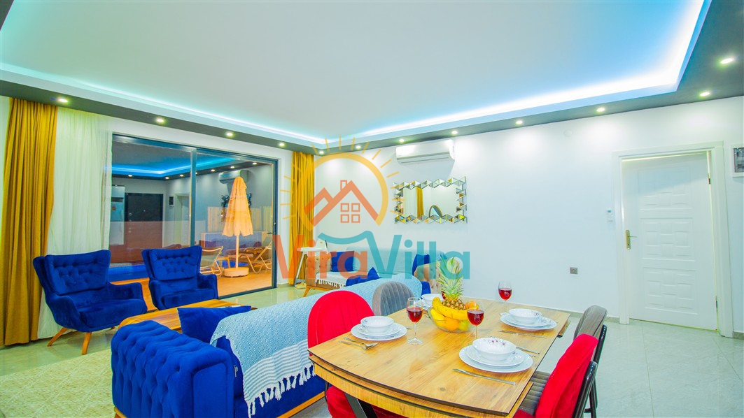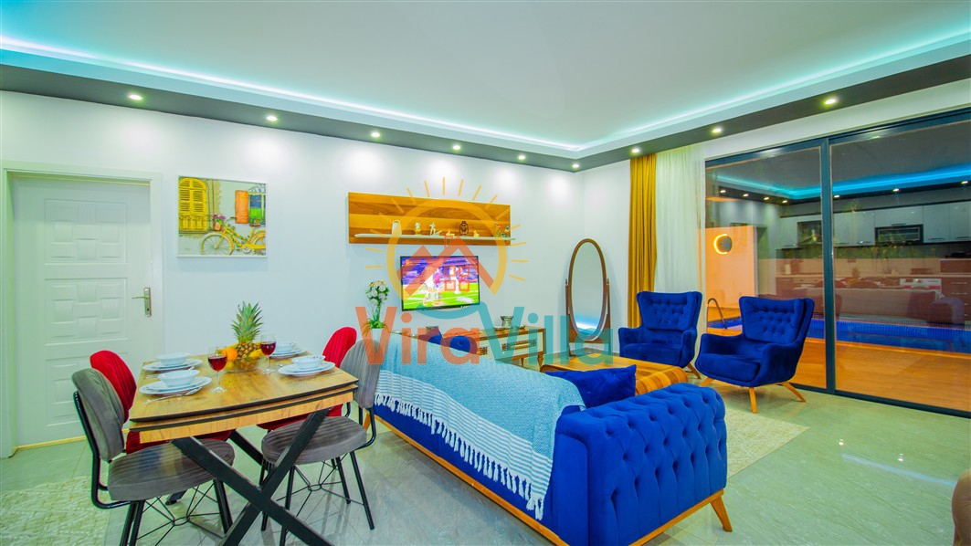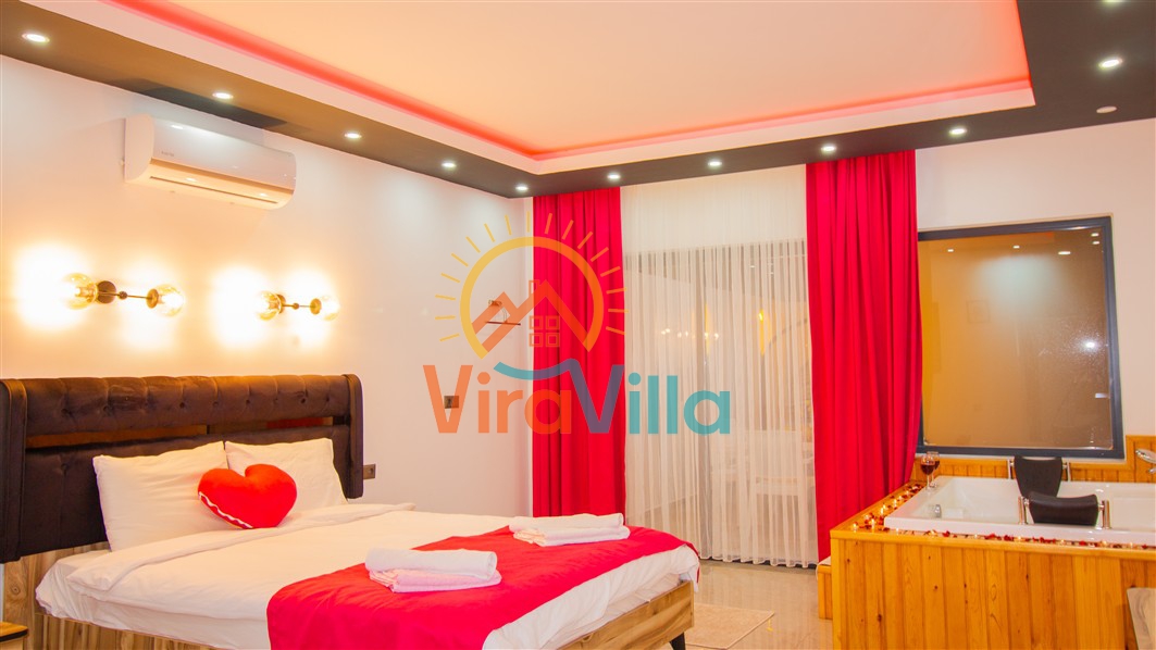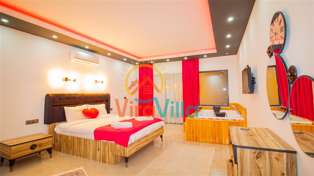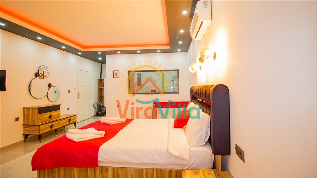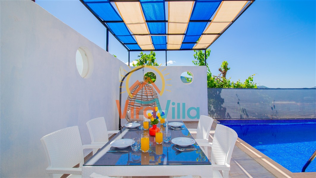 Villa Birnur, Kalkan' ın İkizce bölgesinde, doğanın kalbinde yer alan şirin bir köşede sizleri beklemektedir. 2 yatak odası ile 4 kişiye kadar konforlu bir konaklama imkanı sunan villamız, özel jakuzisi ve büyüleyici doğa manzarasıyla unutulmaz bir tatil deneyimi vadediyor. Her bir odasında şık ve modern dizayn ve rahat yataklar bulunmaktadır. Villamızın havuz alanı korunaklı yapıya sahiptir. Muhafazakar ailelerimiz ve balayı çiftlerimiz için ideal tatil villalarımız arasında yer almaktadır.