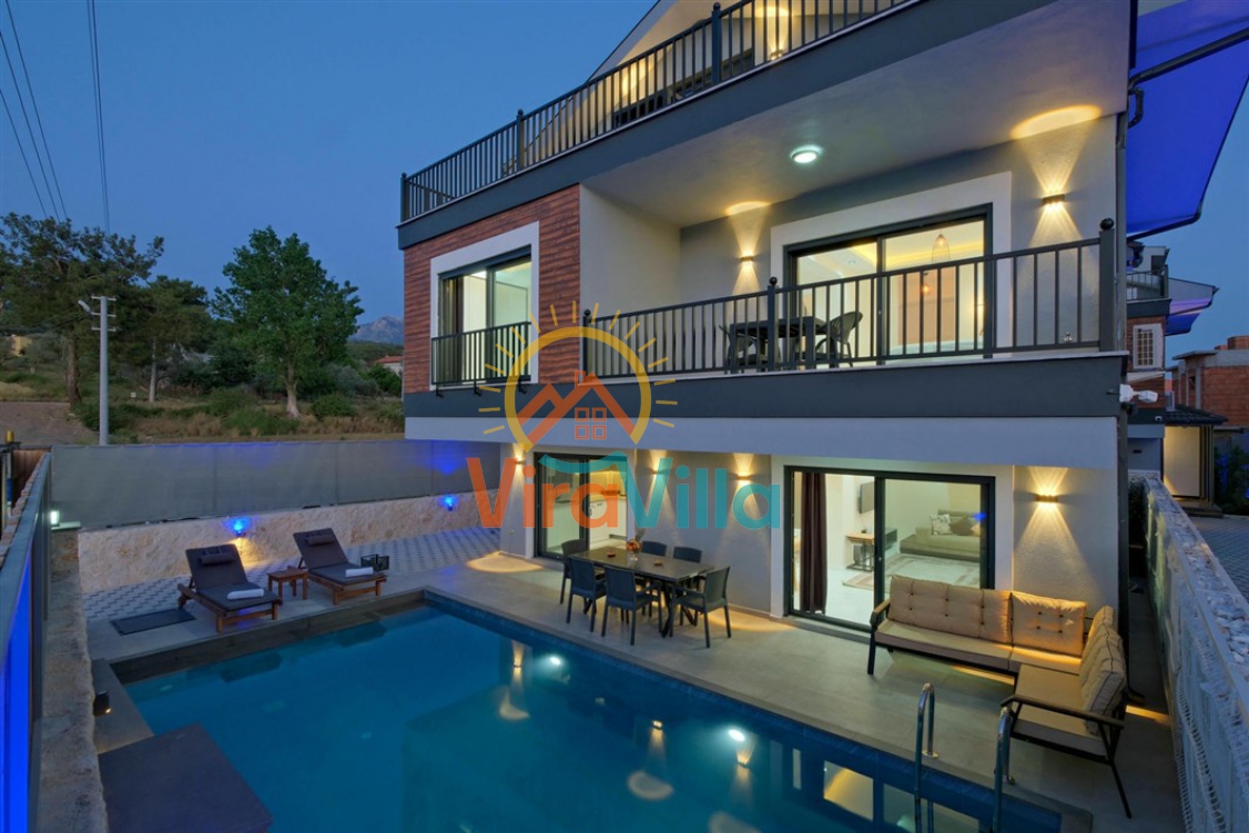 Villa Black Day 1 Seydikemer bölgesinde yer almaktadır. Villamız 3 yataklı odası ile 6 kişilik konaklama yapamayacaktır. Villamızın 2 yatak odalı çift kişilik yatak, 1 yatak odasında ise 2 adet tek kişilik yatak mevcuttur. Doğa içerisinde yer alan villamız sizlere sessiz, sakin ve huzurlu bir tatil imkanı sağlamaktadır. Modern ve şık tasarımı ile evinizde gibi hissedeceğiniz Villa Black Day 1 sizlere muhteşem bir tatil imkanı sağlıyor. Villamızın bir yatak odasında jakuzi mevcuttur.
