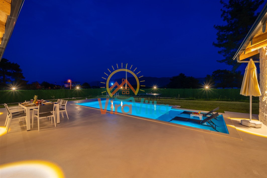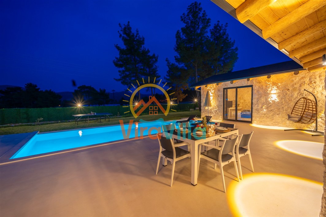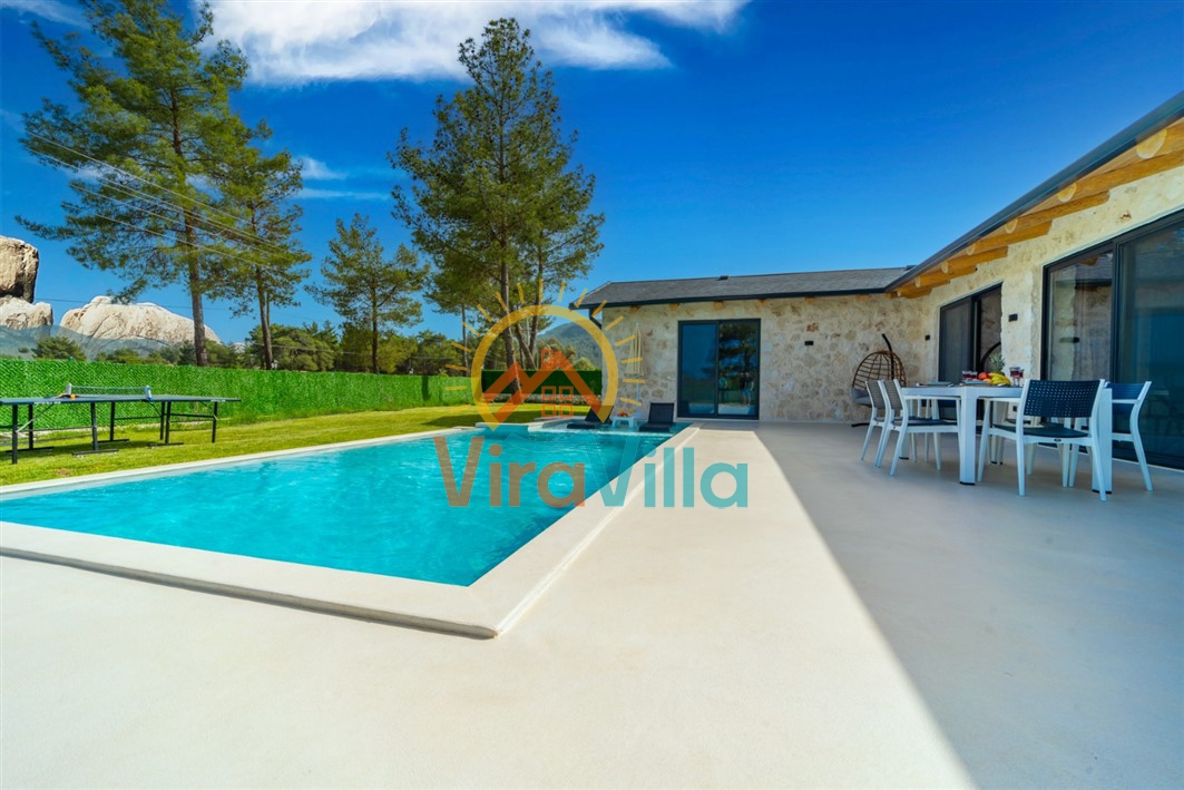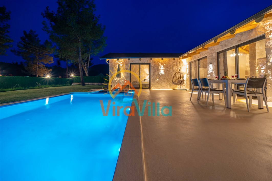 Kaş’ın Uğrar bölgesinde yer alan bu 4 kişilik muhafazakâr balayı villamız, doğayla iç içe, huzurlu ve konforlu bir tatil arayanlar için ideal bir seçenektir. Villamızın dışarıdan görünmeyen özel yüzme havuzu, mahremiyete önem veren balayı çiftleri ve aileler için tasarlanmıştır. Geniş bahçesi, barbekü alanı ve güneşlenme terası sayesinde doğa içinde keyifli anlar yaşanabilir. Villamız içerisinde modern ve şık detaylarla döşenmiş iki yatak odası ve ferah bir salon bulunmaktadır. Villamızda ihtiyaç duyulabilecek tüm mutfak ve ev eşyaları eksiksiz olarak mevcuttur.