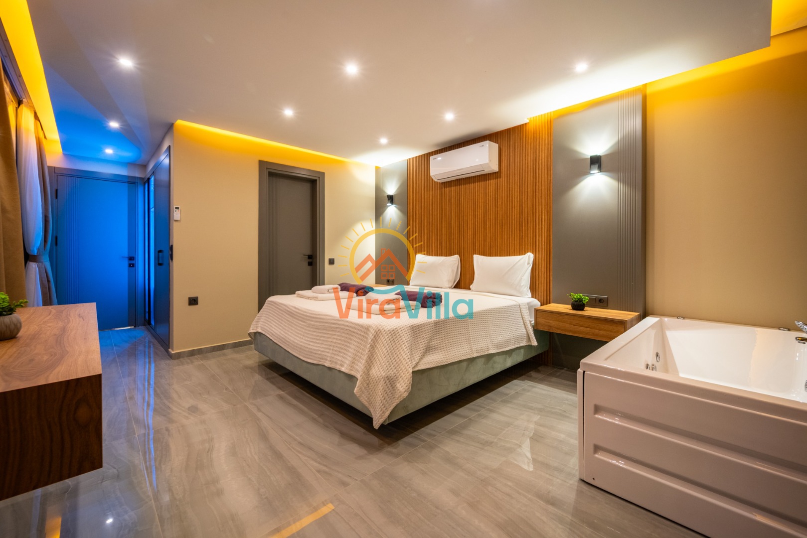 Kalkan Yeşilköy bölgesinde bulunan 4 kişilik konaklama kapasitesi ve 2 adet yatak özelliklerine sahip villalarımızdandır. Villamızın sahip olduğu jakuzide yılın zorluklarını atarken, modern mimarisi ile konforun keyfini çıkarın.