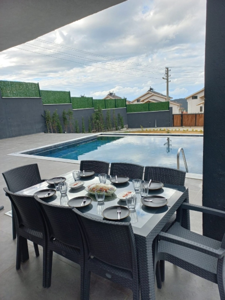 Fethiye Ovacık bölgesi kapsamında yeni tamamlanan Villa Dedem E, içerisinde bulunan hamam, sauna ve kapalı havuz gibi özellikleri sayesinde konforlu ve dinlendirici bir tatil geçirmeniz için tasarlandı. Modern iç ve dış mimariye sahip villamız, eğlence merkezlerine ve ihtiyaçlarınızı karşılayabileceğiniz pazar, restorant vs. olanaklar gibi olanaklara yakın bir yerde yer almaktadır. Yemyeşil bahçesi ve bahçesinde yer alan sallanma, genel ve özel kayıt odası güzel bir villa tatili geçirmeniz için villamızda yer alır. 4 yatak odalı ve 8 kişilik konaklamaya sahip olan Villa Dedem E, kalabalık odalar için de harika bir tercihtir.