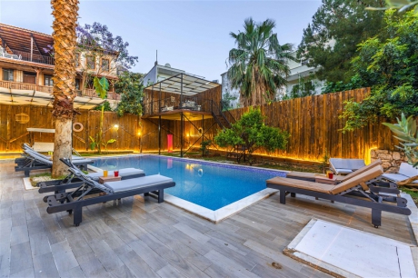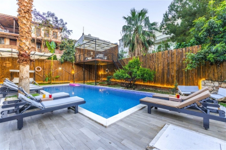 Kalkan Ulugöl mevkiinde yer alan Villa Deha 4 yatak odası ile 8 kişilik konaklama kapasitesine sahiptir. Her detay özenle düşünülerek tasarlanmış olan villamız, misafirlerimize unutulmaz anlar yaşatmak için özel donanımlarla donatılmıştır. Villamız, geniş ve ferah mekanlarıyla modern tasarımıyla öne çıkmaktadır. Tatilinizi daha keyifli hale getirmek adına villamızda masa tenisi, bilardo, sauna, jakuzi ve sinema odası mevcuttur. Villamız şehir merkezine ve denize olan yakınlığı, misafirlerimize hem şehir hayatının avantajlarını hem de denizin keyfini çıkarma imkanı tanımaktadır.