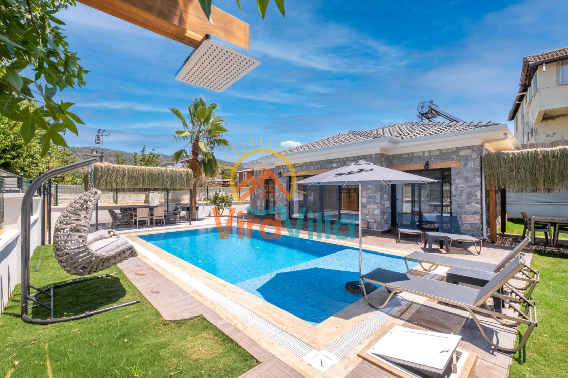 Villa Demo, Fethiye Çiftlik mevkiinde yer alan 2 yatak odalı şirin bir yazlıktır. Balayı çiftleri ve çekirdek filtreleri için ideal seçenekler arasında yer alan Villa Demo, oldukça ferah ve modern dizayn edilmiştir. Çift kişilik yatak odasında yer alan jakuzide yılın tüm yorgunluğunu üzerinizden atarak harika bir villa tatili deneyimi yaşayabilirsiniz.