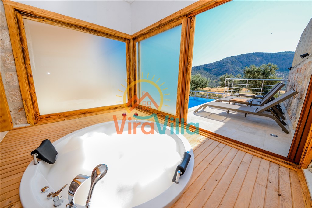 Kalkan Ulugöl bölgesinde yer alan 4 kişilik konaklama kapasitesi ve 2 adet yatak odasına sahip villalarımızdandır. Jakuzili ve muhafazakar olmasıyla dikkatleri çeken villamız ailenizle keyifli vakitler geçirmeniz için tasarlanmıştır. Muhafazakar villa kategorisinde olan villamızı rahatlıkla tercih edebilirsiniz.