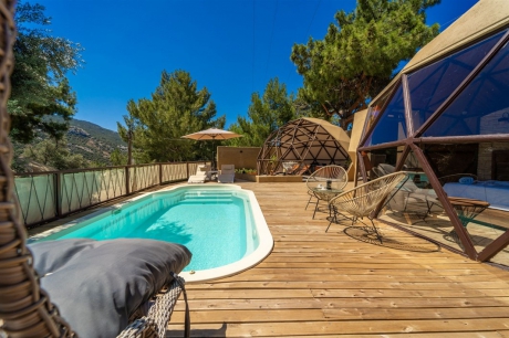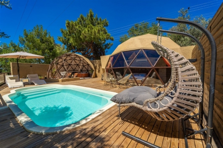 Villa Domes 5, Kalkan'ın İslamlar bölgesinde konumlanmıştır. 1+0 tasarımıyla 2 kişilik konaklama kapasitesine sahip olan villamız, glamping yapısı ile dikkat çekmektedir. Balayı çiftleri için ideal bir seçenek olan bu tatil villamız, doğa ile iç içe bir konumda yer alarak unutulmaz bir tatil deneyimi sunmaktadır.