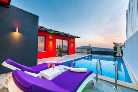Kalkan Üzümlü'de bulunan Villa Gece, tek yatak odalı ve jakuzili bir villamızdır. Korunaklı havuz alanına sahip villamız, muhafazakar çiftlerimiz ve gözlerden uzak tatil yapmak isteyen balayı çiftlerimiz için harika bir tatil fırsatı sunuyor. Panoromik doğa ve Patara sistemine sahiptir. Konfor ve şıklığın bir arada sunulduğu villamızda romantik bir tatil sizi bekliyor.