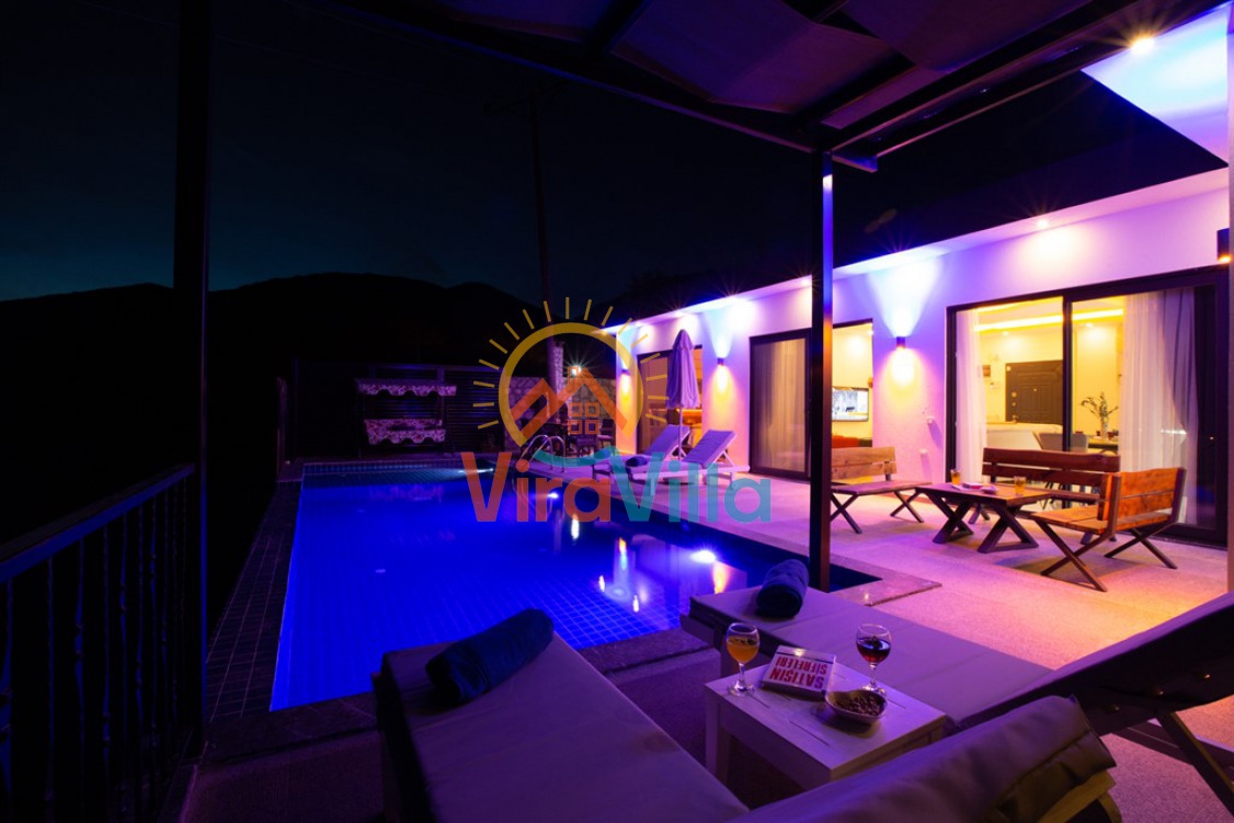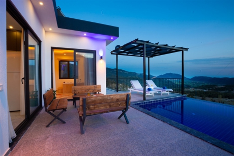 Kalkan İkizce bölgesinde bulunan 4 kişilik konaklama kapasitesi ve 2 adet yatak odasına sahip villalarımızdandır. Doğa içerisinde ve jakuzili olması nedeni ile siz değerli misafirlerimizin oldukça sık tercih etmiş olduğu tatil evlerimizdendir.