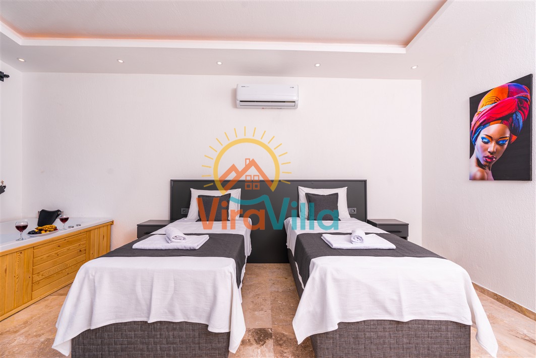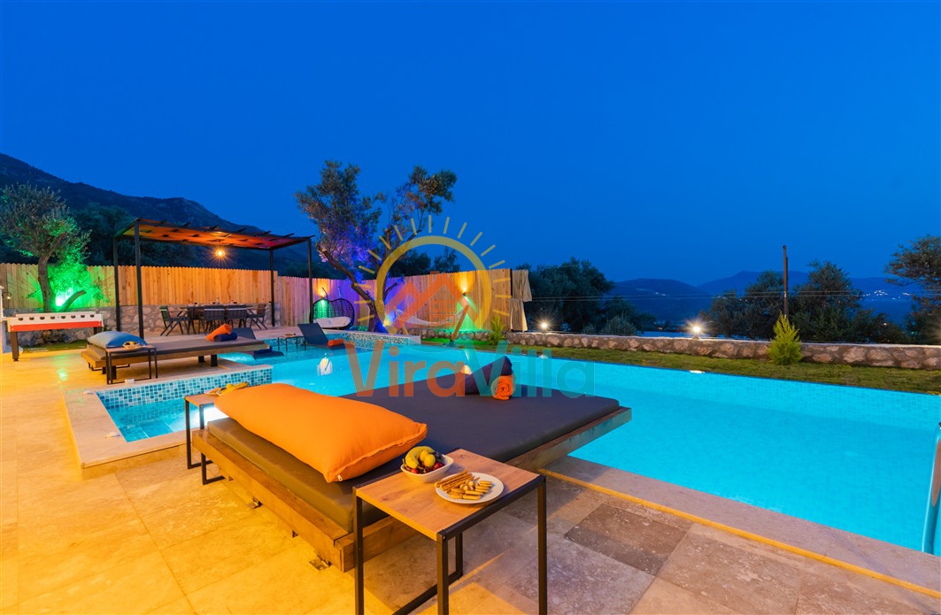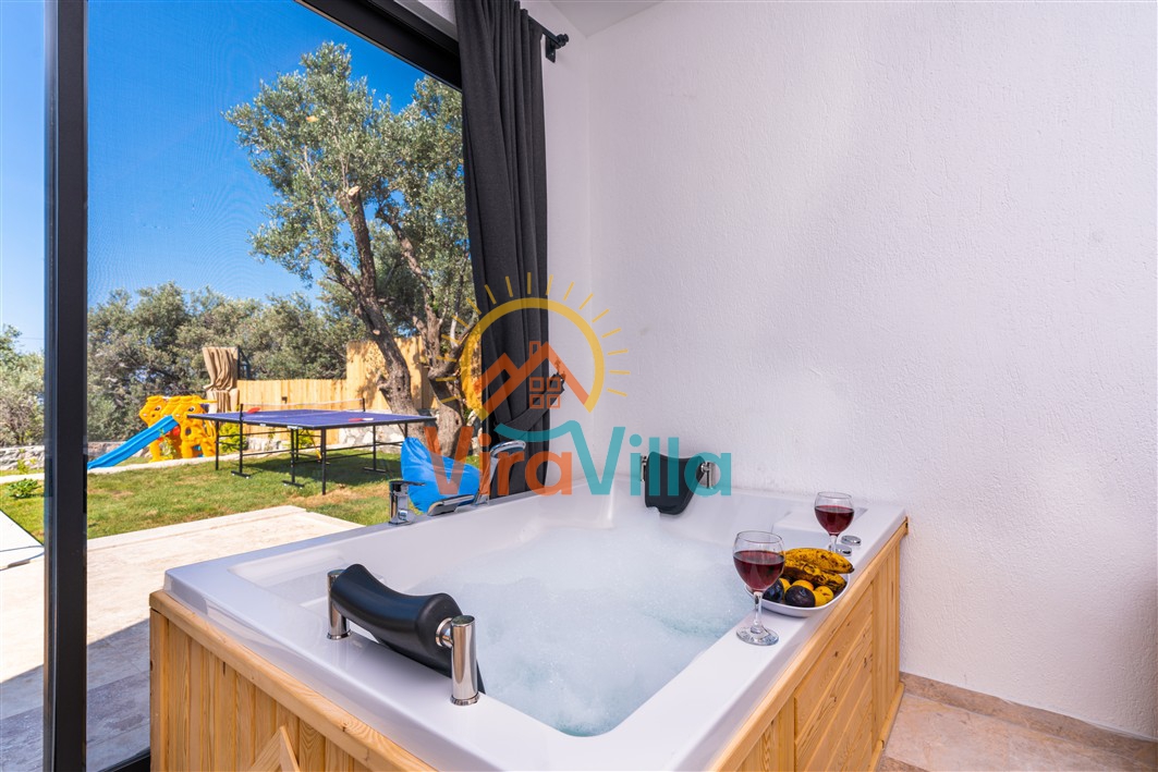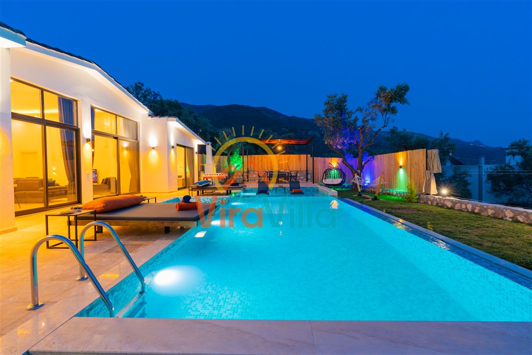 Villa İbiza Kalkan Çayköy bölgesinde yer almaktadır. Villamızın 2 yatak odası mevcuttur. Maksimum 4 kişilik konaklama kapasitesine sahiptir. Muhafazakar ailelerimiz ve balayı çiftlerimiz için ideal olan villamızın havuz alanı korunaklıdır. Villamızın iki yatak odasında da jakuzi mevcuttur. Doğa içerisinde yer alan villamız sizlere huzurlu bir tatil imkanı sağlamaktadır.
