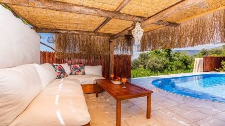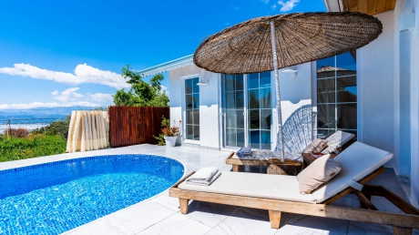 Villa İlkyaz Suite, Kalkan Üzümlü'de bulunan oldukça şık ve konforlu iç ve dış tasarıma sahip balayı villasıdır.Korunaklı havuz alanına sahip olan villamız,yemyeşil doğanın içinde kuş seslerinin tatilinize devam etme,muhafazakar çiftlerimizin sıklıkla tercih ettiği villalarımızdandır.