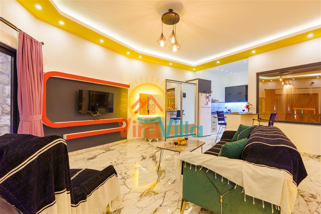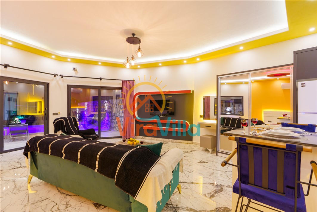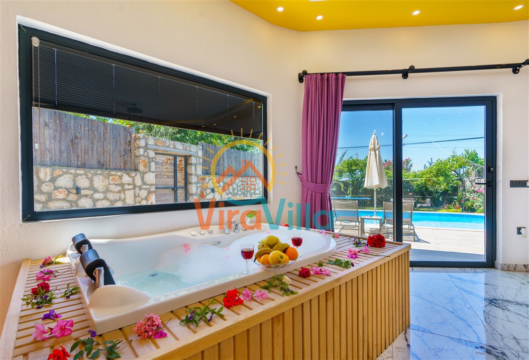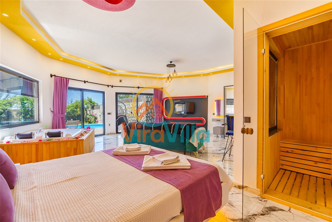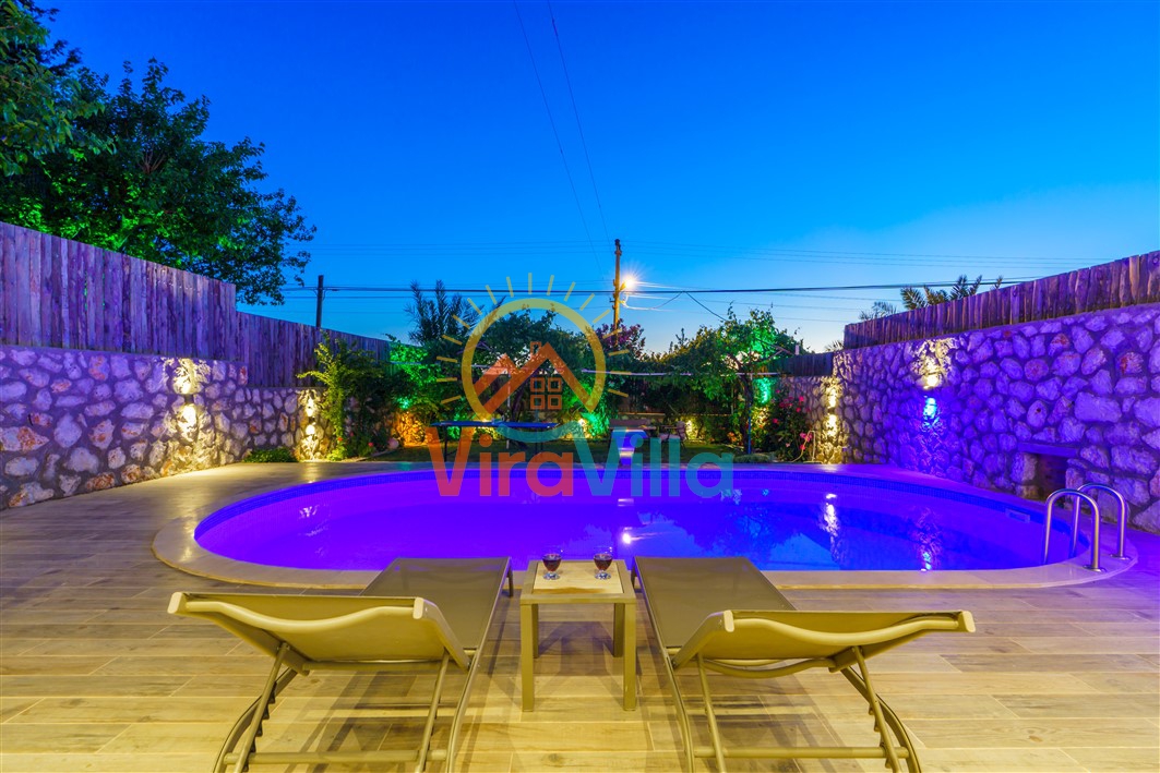 Villa Korel 2, Kalkan Üzümlü bölgesinde yer almaktadır. Villamız 1+0 olarak dizayn edilmiştir. 2 kişilik konaklama kapasitesine sahiptir. Villamızın havuz alanı korunaklı yapıya sahiptir. Muhafazakar çiftlerimiz ve balayı çiftlerimiz için ideal tatil villalarımız arasındadır. Villamız doğa içerisinde yer almaktadır. Villamızda bulunan jakuzi ve saunada yılın tüm yorgunluğunu üzerinizden atabilirsiniz. Sizlere huzurlu ve sakin bir tatil imkanı sağlamaktadır.
