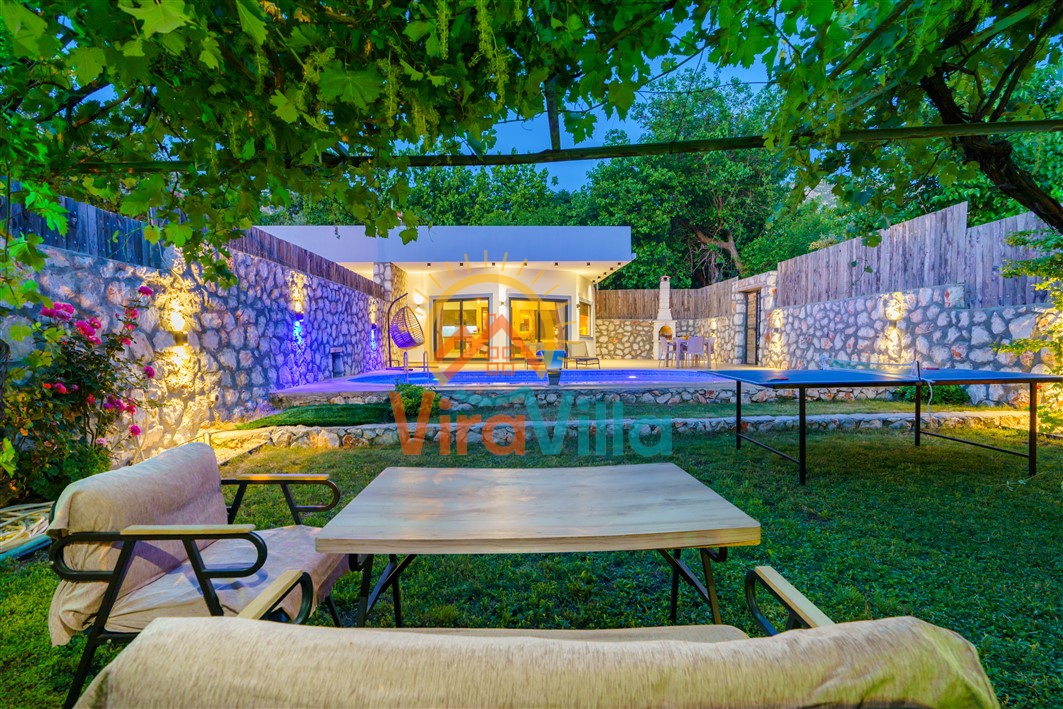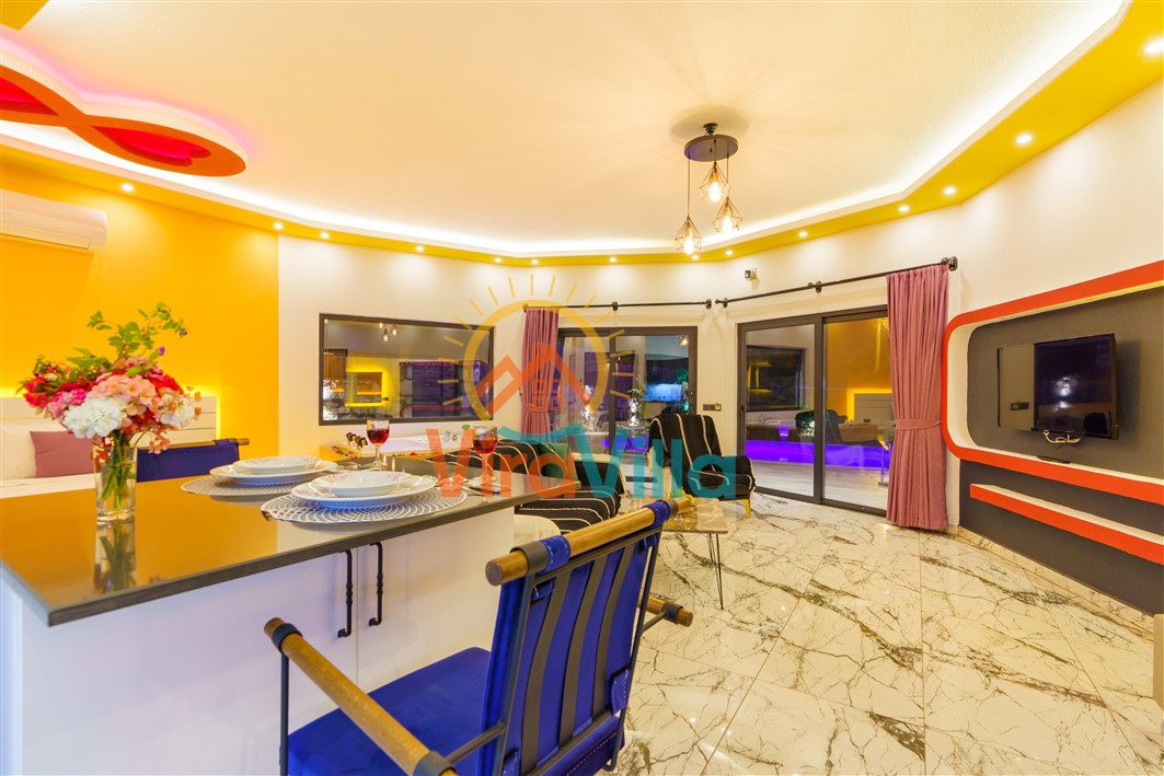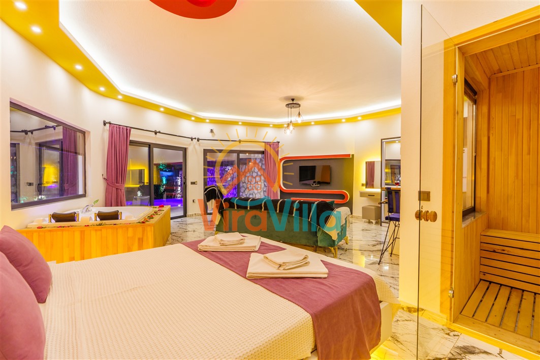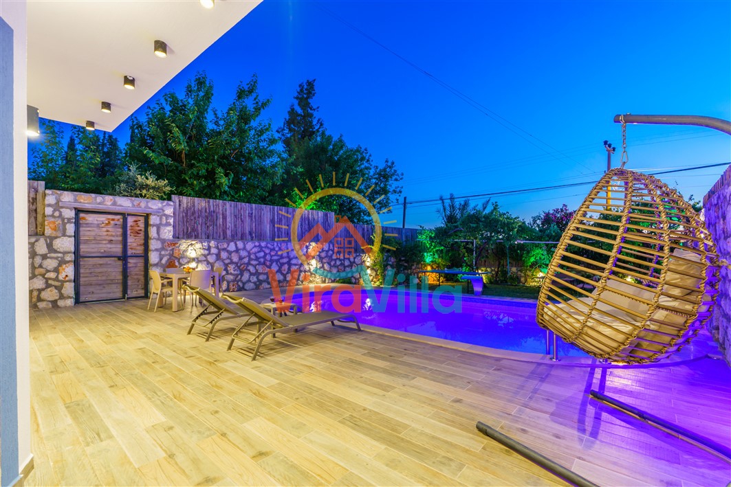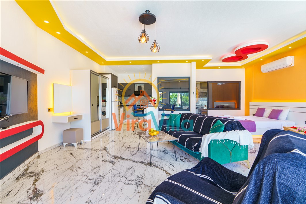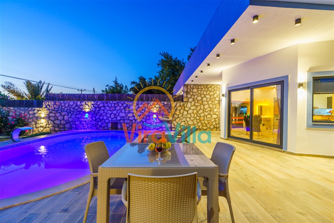 Villa Korel 2, Kalkan Üzümlü bölgesinde yer almaktadır. Villamız 1+0 olarak dizayn edilmiştir. 2 kişilik konaklama kapasitesine sahiptir. Villamızın havuz alanı korunaklı yapıya sahiptir. Muhafazakar çiftlerimiz ve balayı çiftlerimiz için ideal tatil villalarımız arasındadır. Villamız doğa içerisinde yer almaktadır. Villamızda bulunan jakuzi ve saunada yılın tüm yorgunluğunu üzerinizden atabilirsiniz. Sizlere huzurlu ve sakin bir tatil imkanı sağlamaktadır.