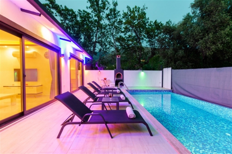 Kalkan Üzümlü bölgesinde yer alan Villa Mandalin iki yatak odası ile 4 kişilik konaklama kapasitesine sahiptir. Villamızın havuz alanı korunaklı yapıya sahiptir. Muhafazakar ailelerimiz ve balayı çiftlerimiz için ideal tatil villalarımız arasında yer almaktadır. Villamızın suit yatak odasında jakuzi mevcuttur. Doğa içerisinde yer alan villamız sizlere huzurlu bir tatil imkanı sağlamaktadır.