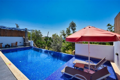 Kalkan Üzümlü bölgesinde 2 kişilik konaklama kapasitesi ve 1 adet yataklı villalarımızdandır. Ksımen deniz manzaralı ve jakuzili olması nendeni ile siz değerli insanların oldukça sık tercih ettiği tatil evlerimizdendir.