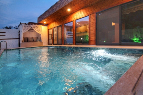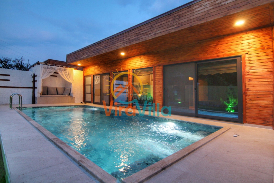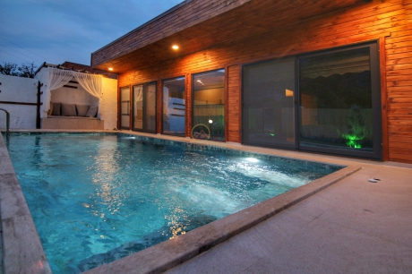 Villamız oldukça modern ve şık bir iç dizayna , yemyeşil keyifli yaşam alanları sunan bir bahçeye sahiptir. Villamız İnlice Plajı, Katrancı ve Günlüklü Koyu'na oldukça 3-5 dakikalık sürüş mesafesinde yer almaktadır. Hem denizin hem havuzun tadını doyasıya çıkarabileceğiniz bir konumda bulunmaktadır. Tüm bu özellikleri ile çekirdek aileler ve balayı çiftleri için oldukça ideal bir villadır.