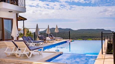 Kaş Çukurbağ bögesinde bulunan 8 kişilik konaklama kapasitesi ve 4 adet yatak odasına sahip villalarımızdandır. Doğa içerisinde olması ve geniş aile ve arkadaş gruplarına uygun olması ile birlikte sıkça tercih edilmektedir. Özel havuzlu bu villamızda tüm yılın yorgunluğunu atabileceksiniz.