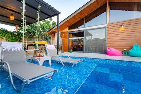Kalkan Sarıbelen bölgesinde bulunan 2 kişilik 1 adet yatak odasına sahip villalarımızdandır. Jakuzili ve sinema odalı olması nedeni ile siz değerli misafirlerimizin oldukça sık tercih ettiği tatil evlerimizdendir.