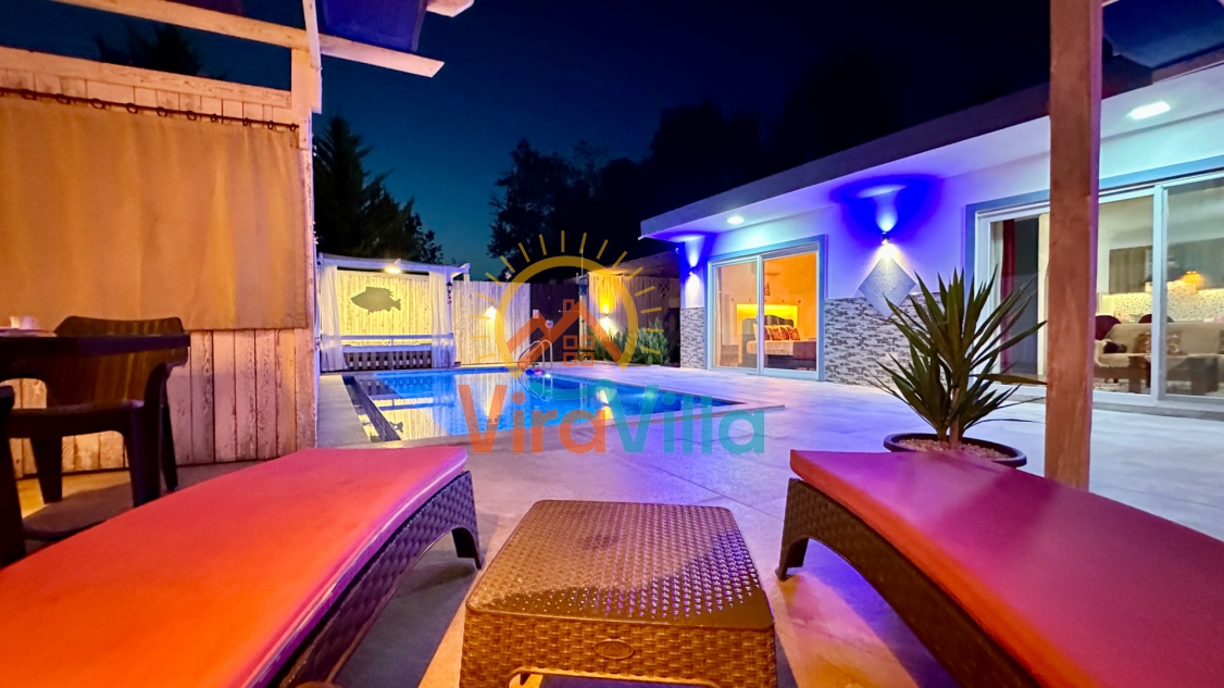 Kalkan Üzümlü bölgesinde 2 kişilik konaklama kapasitesi ve 1 adet yatak odasına sahip villalarımızdandır. Jakuzili olması nedeni ile balayı çiftlerine ve korunaklı havuz alanı ile de muhafazakar ailelerimize uygun tatil evlerimizdendir.
