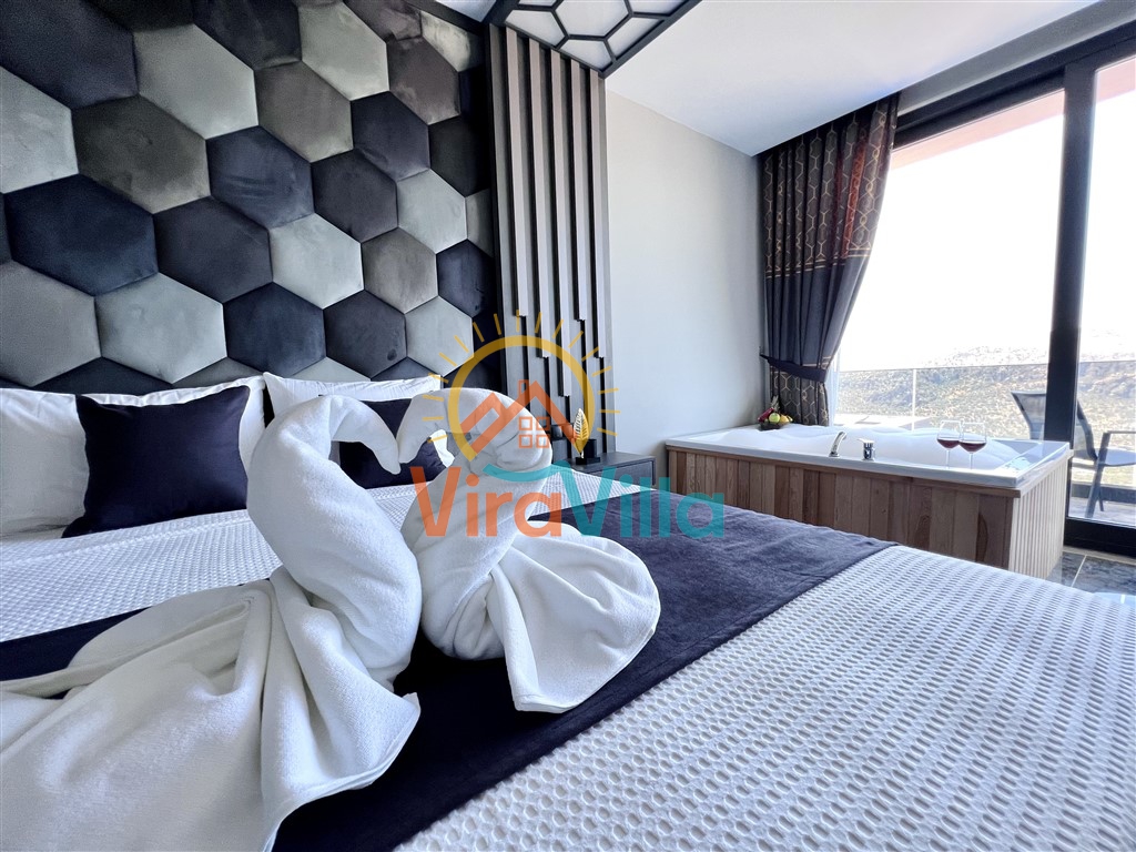 Kalkan'a bağlı Yeşilköy mahallesi mevkiinde yer alan, 2022 yılında tamamlanmış ultra lüks bir tatil villasıdır. Bu muhteşem villanın zemin katında bir hamam, bir sauna ve kapalı havuz bulunmaktadır. Üst katta ise 3 adet süit yatak odası yer almaktadır. Tüm odalarda benzersiz deniz ve doğa manzarası sunan Villamız , Kalkan merkezine sadece 5 dakika sürüş mesafesindedir. Ayrıca, villamız sessiz ve sakin bir bölgede bulunurken aynı zamanda gözlerden uzak bir konumda yer almaktadır.