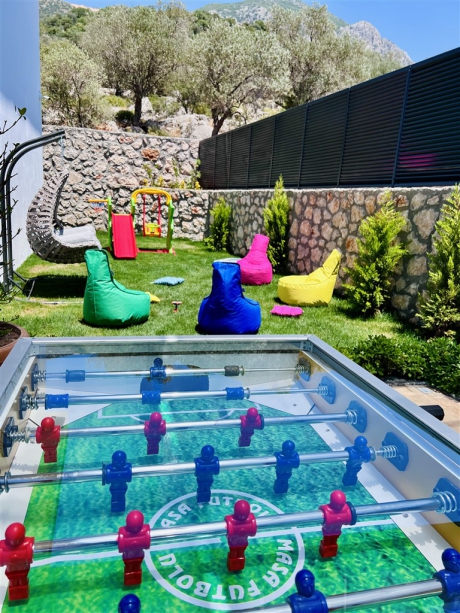 Villada ayrıca sauna odası, hamam, kapalı havuz, air hokey, langırt ve oyun parkı gibi birçok olanak da sunulmaktadır.