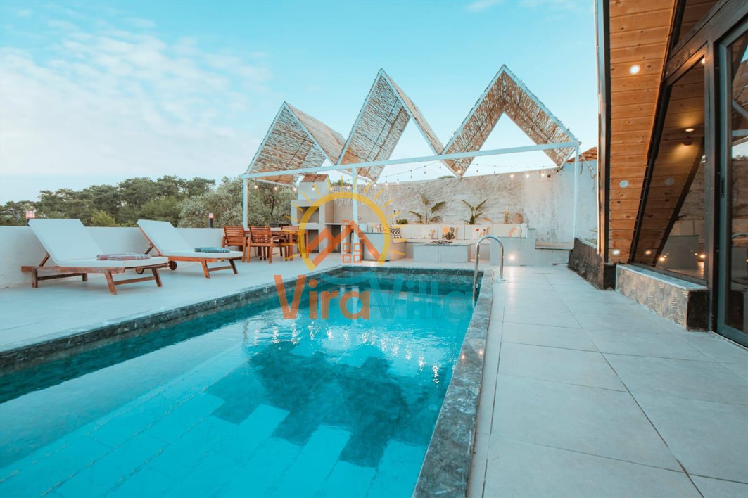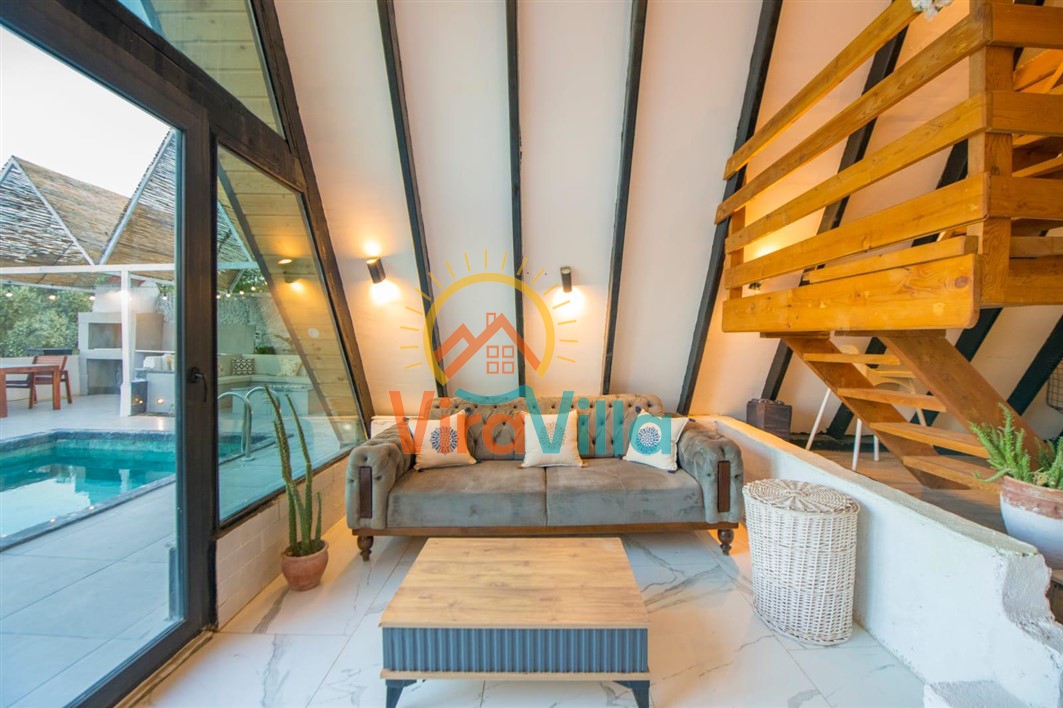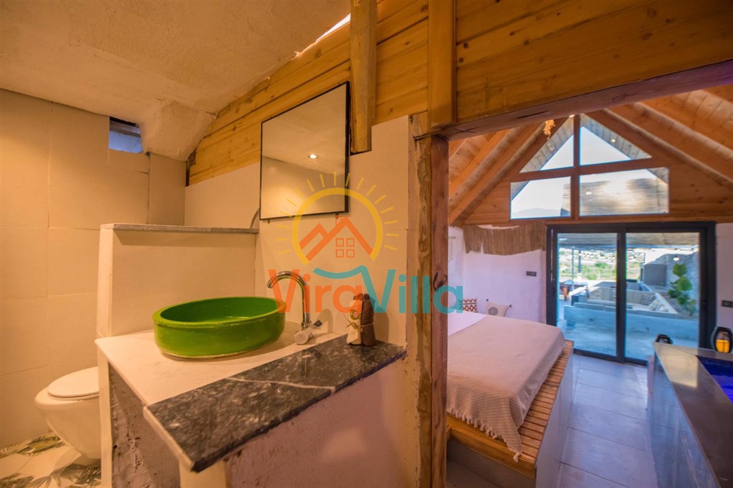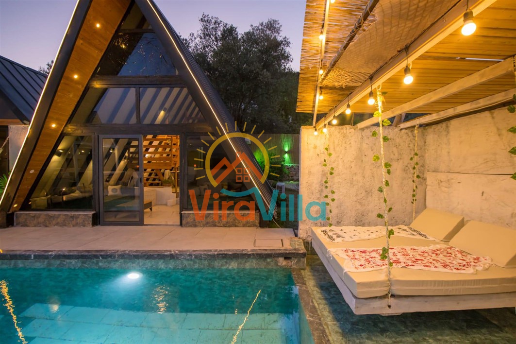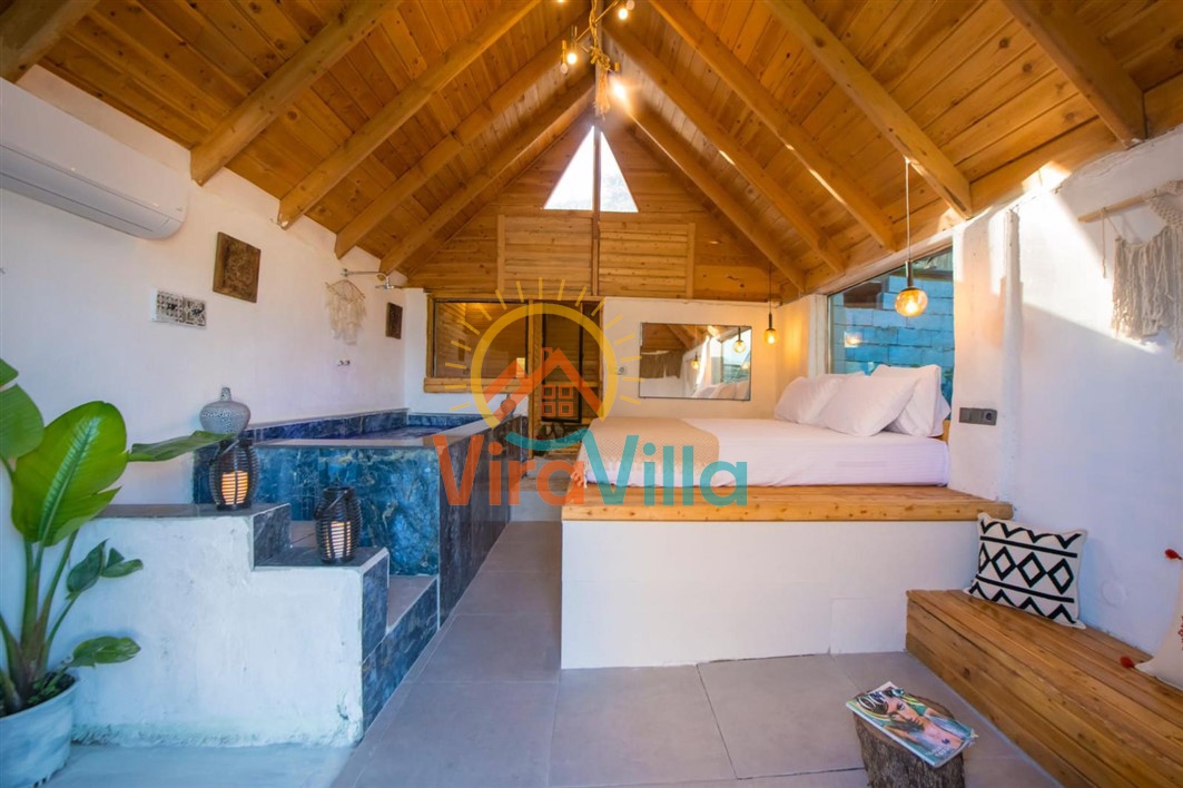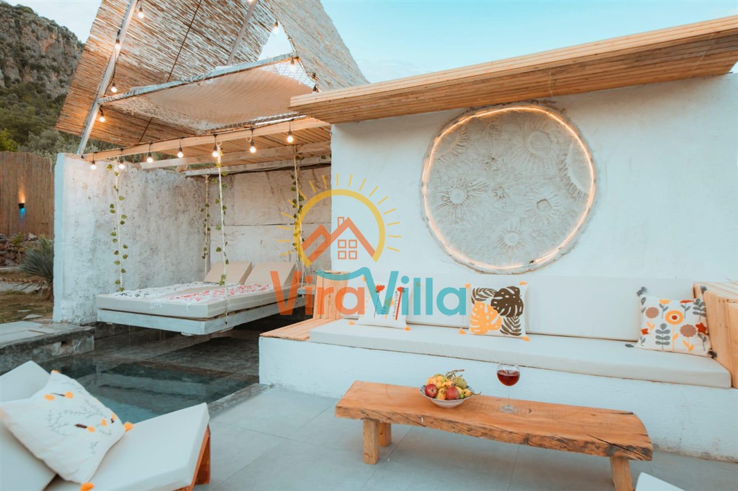 Villa Pukka Fethiye Seydikemer Eşen bölgesinde yer almaktadır. Villamız 2 adet yan yana bulunan bungalovdan oluşmaktadır. Bir bungalovda salon, mutfak ve asma katta yatak odası mevcuttur. Yan tarafta bulunan bungalovda ise yatak odası ve banyo mevcuttur. Eşsiz tasarımı ile sizlere huzurlu bir tatil imkanı sunan villamız balayı çiftlerimiz için ideal tatil villalarımız arasında yer almaktadır. Villamızın havuz alanı korunaklı yapıya sahiptir. Muhafazakar ailelerimiz için ideal seçeneklerimiz bulunmaktadır.