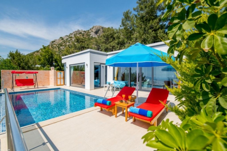 Villa Romeo, Kalkan Üzümlü mevkiinde konumlanan havuzu tam korunaklı villamızdır. Konforlu bir donanıma sahip villamız, tek yatak odalı olmasından dolayı balayı misafirleri ve çiftler için ideal bir seçenektir. Panoramik bir manzaraya sahip villamız, aynı anda hem Patara plajı hem de muhteşem bir doğa manzarasına sahiptir. Eşsiz gün batımında keyifle kahvenizi yudumlayabilirsiniz. Ayrıca hava koşulları gereği havadaki nem oranının düşük olduğu günlerde Yunan adası Rodos’un belirli bir kısmı gözükmektedir.