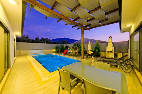 Villa Saki-1, Fethiye Eldirek mevkiinde konumlanan, 2 yatak odalı, 4 kişi kapasiteli balayı villamızdır. Villamız kapalı havuzlu , jakuzili ve çocuk havuzlu , korunaklı muhafazakar tatil villamızdır. Özellikle balayı çiftleri ve çekirdek aileler için ideal olan villamız modern tasarımı ile gözleri üstünde toplamaktadır. Villamızda ihtiyacınız olacak araç gereçler mevcuttur. Muhafazakar ailelerimiz ve balayı çiftlerimiz için ideal olan villamız siz değerli misafirlerimizi beklemektedir.