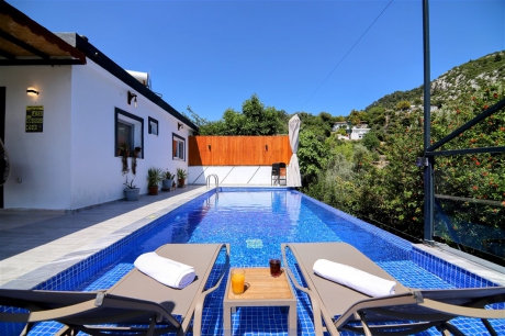 Kalkan İslamlar bölgesinde bulunan 2 kişilik konaklama kapasitesi ve 1 adet yatak odasına sahip villalarımızdandır. Doğa içerisinde ki konumu ve jakuzisi ile siz değerli misafirlerimizin oldukça sık tercih ettiği tatil evlerimizdendir.