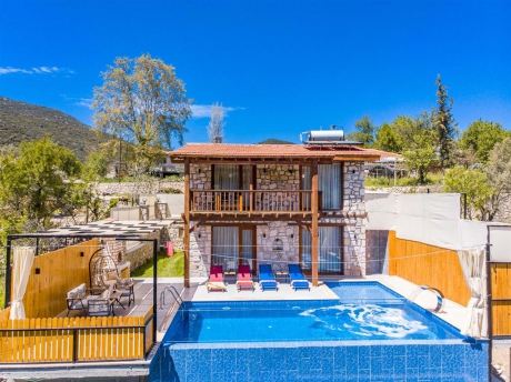 Kalkan Sarıbelen bölgesinde 4 kişi konaklama kapasitesi ve 2 adet yatak özelliklerine sahip villalarımızdan bir tanesidir. Jakuzili olması ve havuzun dışarıda görünmesine ek olarak çocuk havuzlu olması ayrıcalığı ile kişiler tarafından sıklıkla tercih edilen tatil evlerimizden bir tanesidir.