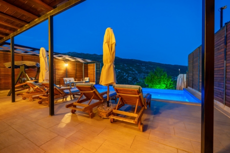 Kalkan İslamlar bölgesinde bulunan 4 kişilik konaklama kapasitesi ve 2 adet yatak özelliklerine sahip villalarımızdandır. Villamız korunaklı yapısı ile muhafazakar olarak yer almaktadır. Doğa içerisinde yer alan villamız jakuzisi ile de siz değerli insanları muhteşem bir tatil için çağırmaktadır.