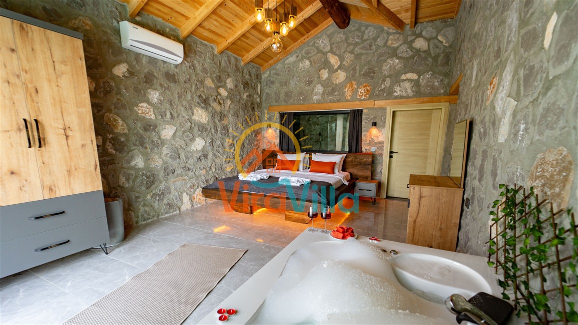 Fethiye Çalış bölgesinde bulunan 4 kişilik konaklama kapasitesi ve 2 adet yatak odasına sahip villalarımızdandır. Jakuzili olan bu villamız modern konsepti ve doğa içerisinde olması nedeniyle oldukça dikkat çekmektedir. Villamız sizi ve ailenizi beklemektedir.