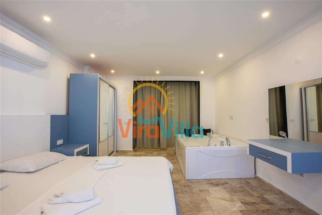 Villa Suit Roze Kalkan Akbel bölgesinde yer almaktadır. Villamız 2 yatak odası ile 4 kişilik konaklama imkanına sahiptir. Villamız şehiriçi ve plaja yakındır. Villa Roze balayı çiftlerimiz için ideal tatil villalarımız arasında yer almaktadır. Eşsiz bir deniz hayatını ev sahipliği yapan villamız sizlere muhteşem bir tatil imkanı sunuyor.
