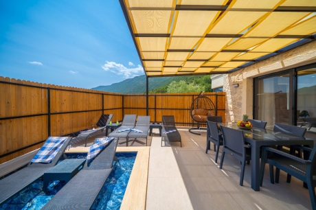 Kaş Çukurbağ bölgesinde bulunan 6 kişilik konaklama kapasitesi ve 3 adet yatak odasına sahip villalarımızdandır. Villamız sahip olduğu jakuzisi ile birlikte size konforlu bir tatil yaşatırken modern yapısıyla da sizleri memnun edecektir. Korunaklı olan villamız muhafazakar ailelerinde tercihi olabilir.