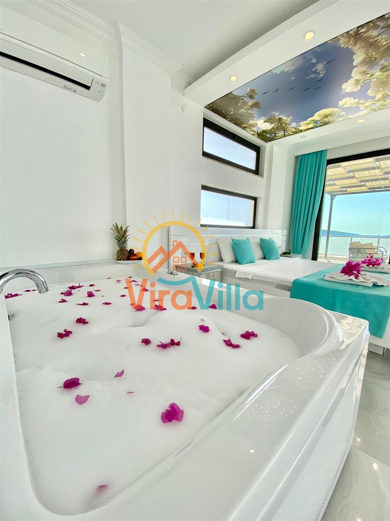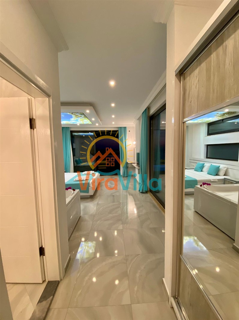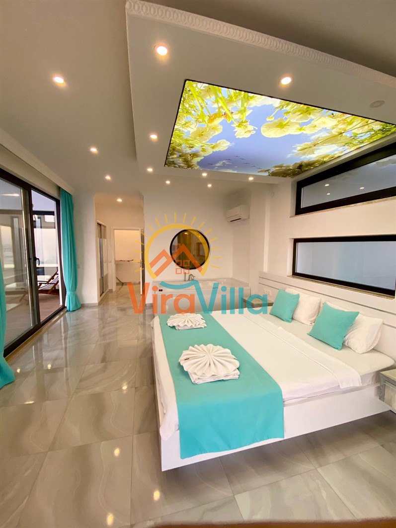 Villa Troy, Kalkan Çavdır bölgesinde bulunan bir villamızdır. 4 kişilik konaklama kapasitesiyle romantik ve huzurlu tatil için mükemmel bir seçenektir. Doğanın büyüleyici manzarası eşliğinde dilerseniz size özel havuzda serinleyebilir, dilerseniz barbekü alanında sevdiklerinizle keyifli akşamlar geçirebilirsiniz. Yatak odasında bulunan jakuzi ve sauna sayesinde günün tüm yorgunluğunu atabilir, ısıtmalı kapalı havuzda ise dört mevsim konforun tadını çıkarabilirsiniz.
