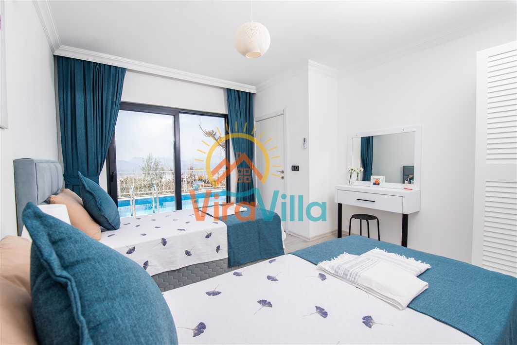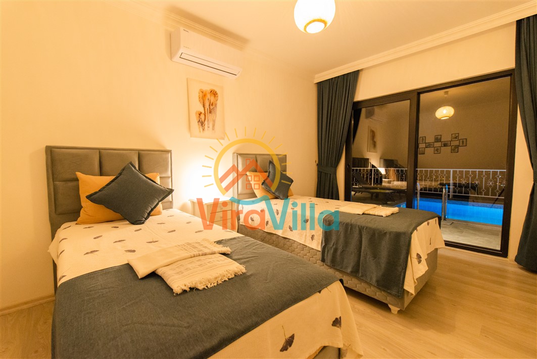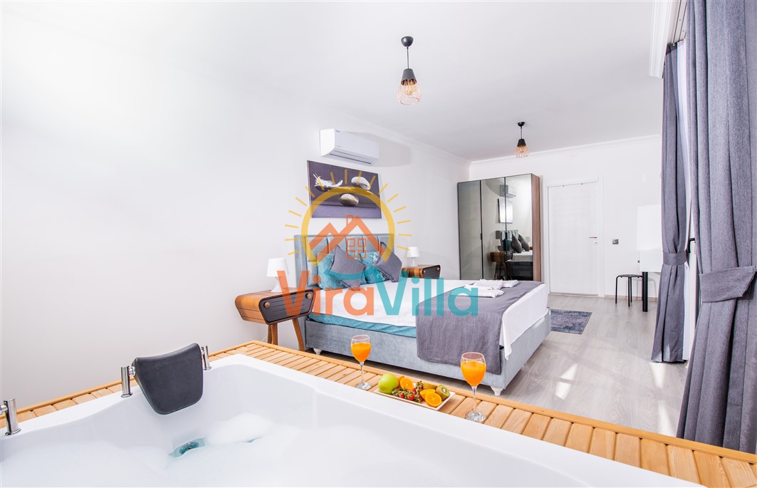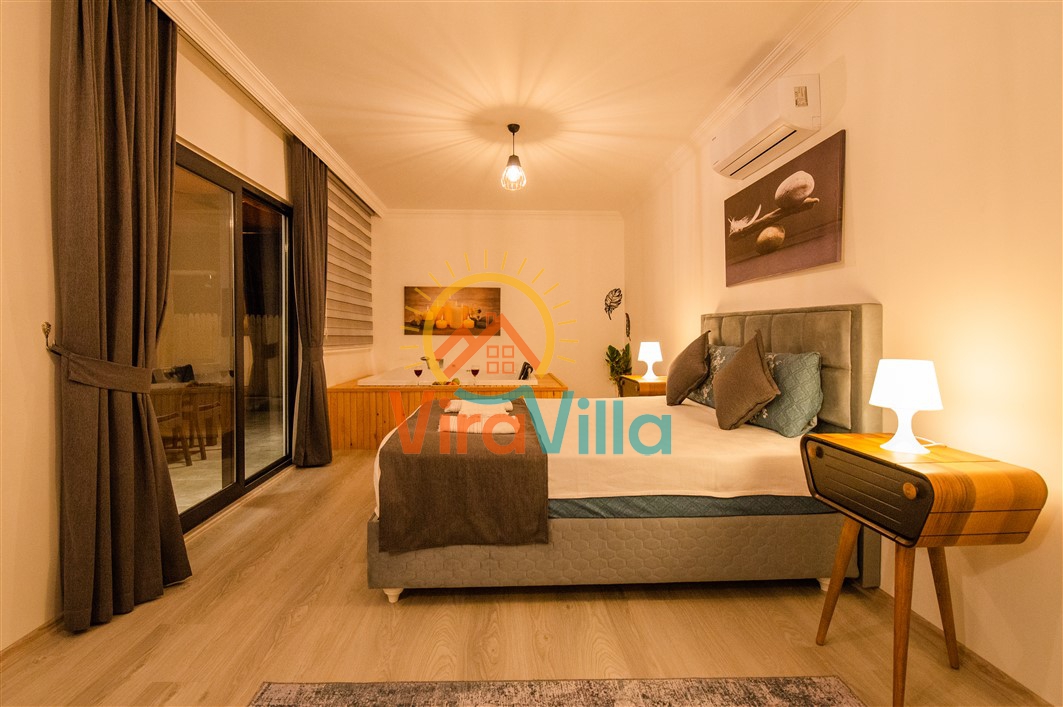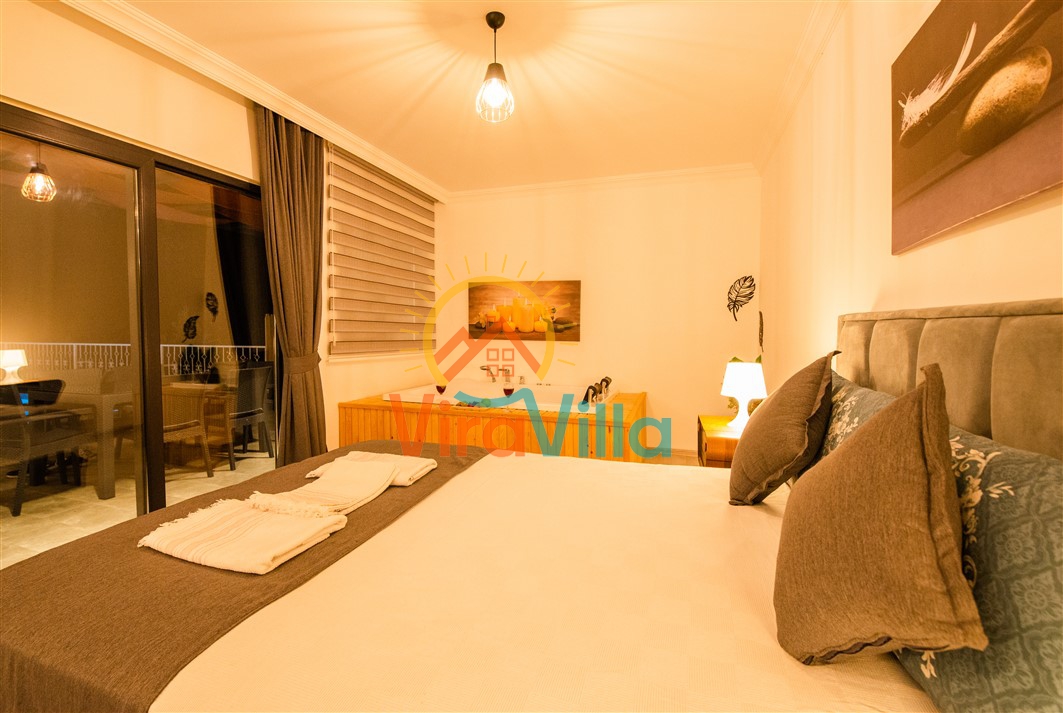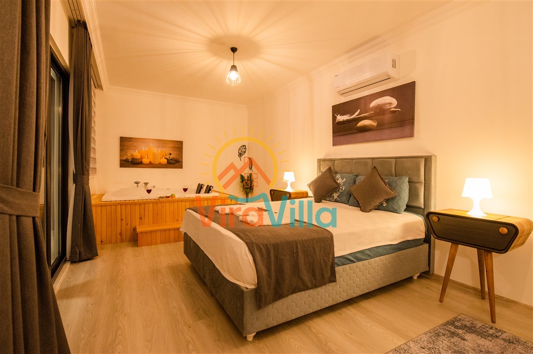 Kalkan Üzümlü bölgesinde yer alan Villa Ural, 2 yatak odası ile 4 kişilik konaklama imkanına sahiptir. Doğa içerisinde yer alan villamız sizlere huzurlu, sessiz, sakin bir tatil imkanı sunmaktadır. Villamızın süit yatak odasında bulunan jakuzi ile muhteşem bir tatil siz değerli varlığımız beklemektedir.
