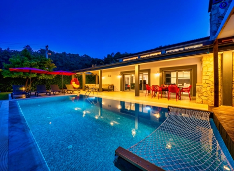 Göcek İnlice bölgesinde bulunan 6 kişilik konaklama kapasitesi ve 3 adet yatak odasına sahip villalarımızdandır.Villamız sahip olduğu modern dizaynı ile dikkatleri üzerine çekmektedir. Doğa içerisinde olan villamız jakuzili olması nedeniyle de tüm yılın yorgunluğunu atmanıza yardımcı olacaktır. Villanın bahçesinde bulunan çocuk oyun alanı ile birlikte aileniz ile keyifli vakitler geçirebileceksiniz. Hayallerin ötesinde bir tatil için sizleri beklemektedir.