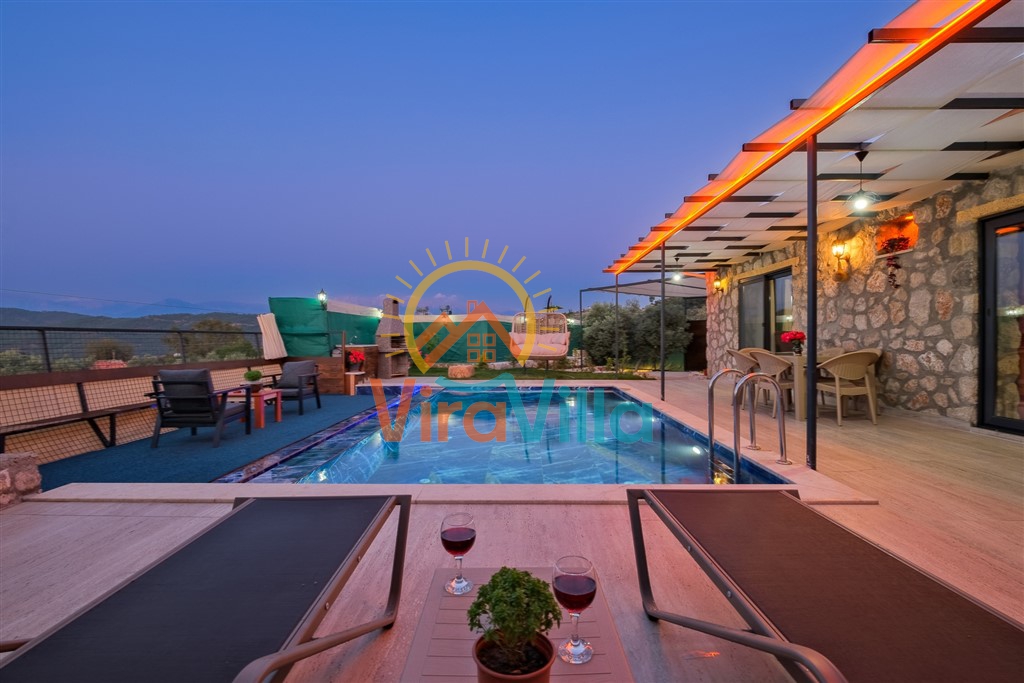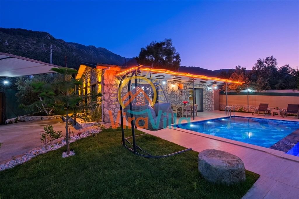 Villa Voss, Fethiye Bozyer'de bulunan 2 yatak odalı ve 4 kişilik konaklama kapasitesine sahip bir villamızdır. Doğa ile iç içe zeytin ağaçlarının arasında bulunan villamız korunaklı havuz alanı ile muhafazakar odalar ve gözlerden uzak tatil yapmak isteyen aileler için ideal bir tatil villasıdır. Taş mimariye sahip olan villamızda, tatiliniz boyunca ihtiyacınız olabilecek tüm detaylar düşünülmüştür.Villa Voss,köy yerleşim alanına 500 m ve çevre yoluna 3 km mesafede bulunmaktadır. Villamızda arka bahçede kalmak koşuluyla evcil hayvan kabul edilebilmektedir.